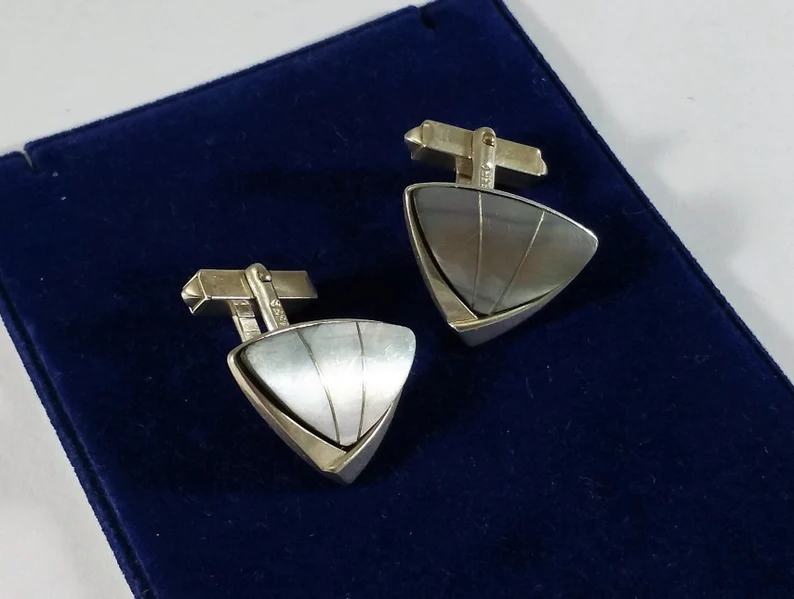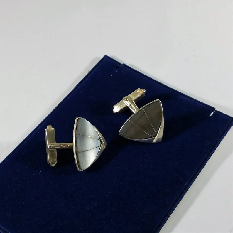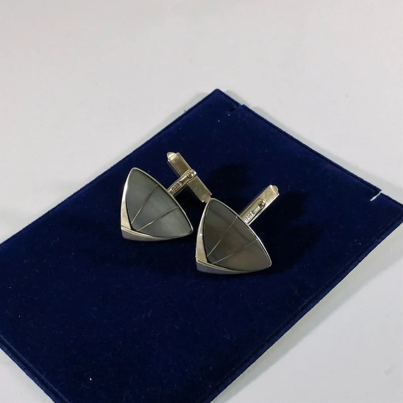 Edle Manschettenknöpfe aus 835 Silber mit grauer Perlmutt-Einlage.