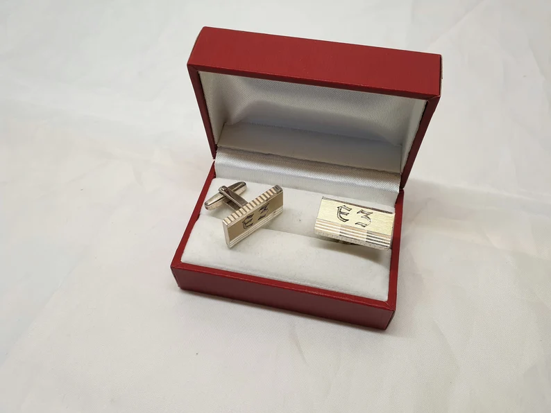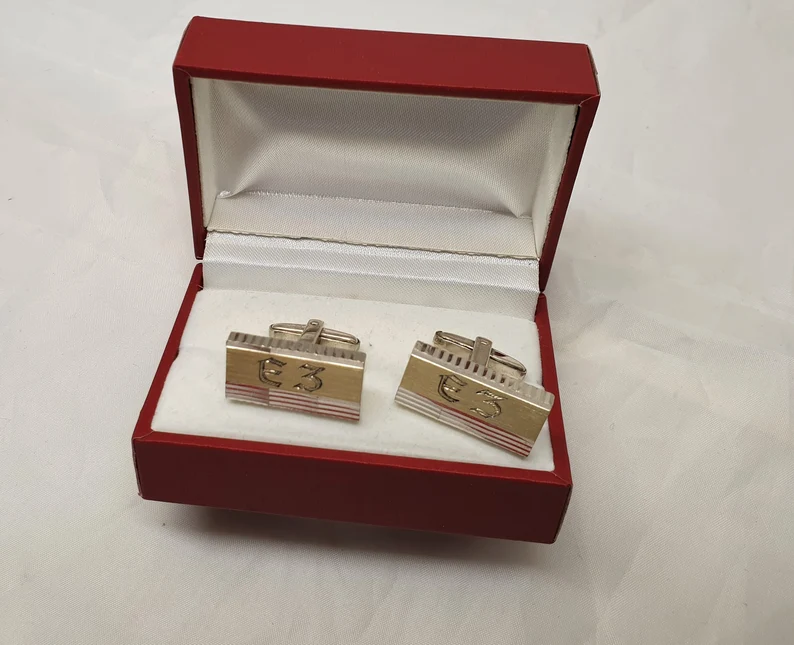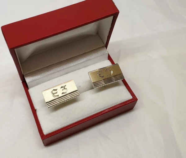 Manschettenknöpfe Cufflinks Silber 835 teilvergoldet Initialen Buchstaben „E3“ Vintage edel MS195