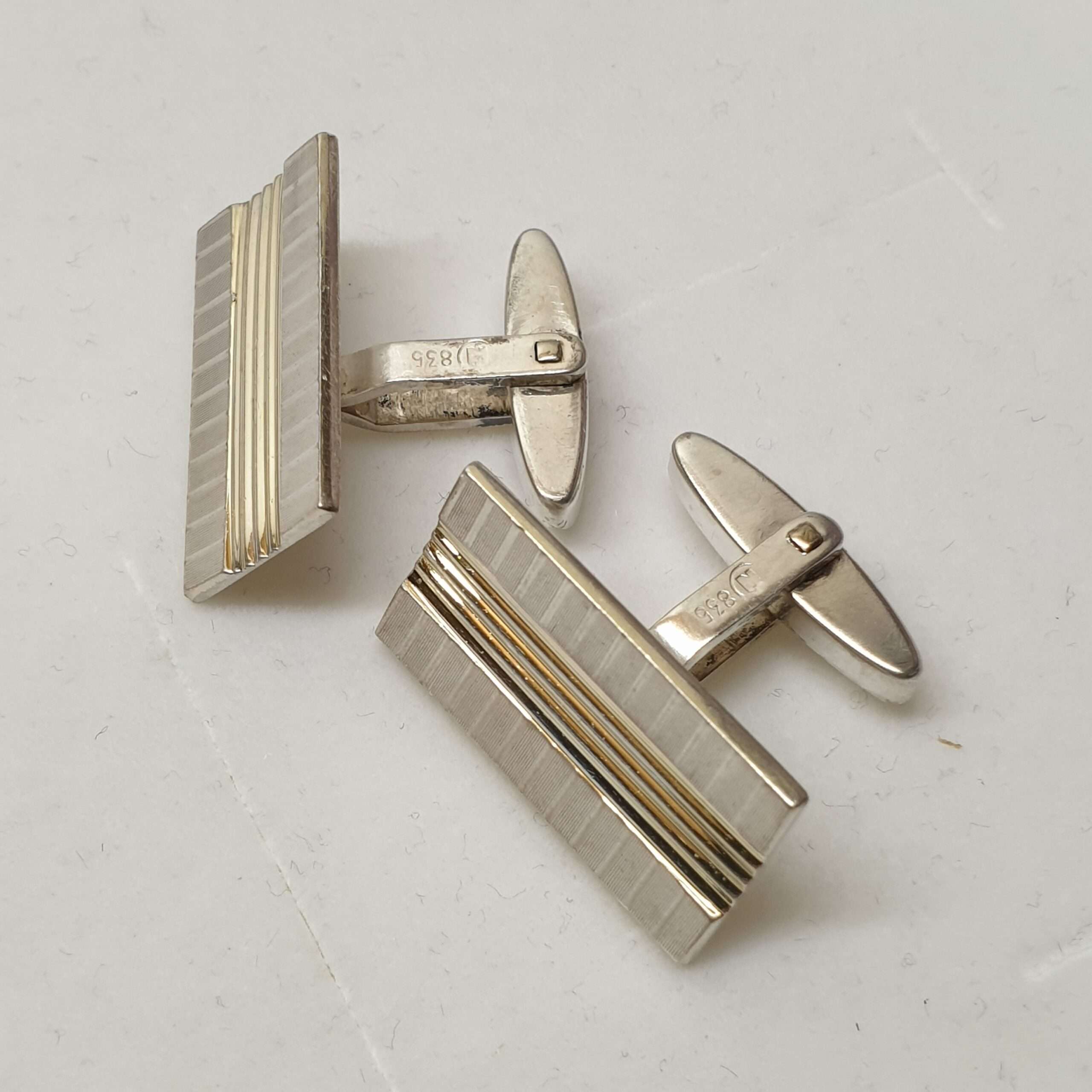 Elegante Vintage Manschettenknöpfe Silber 835 mit Teilvergoldung. Ein außergewöhnlich schönes Design.