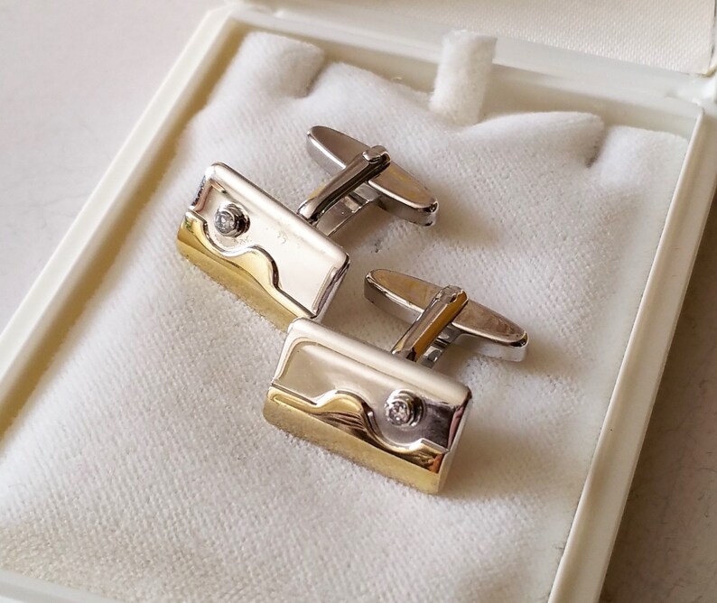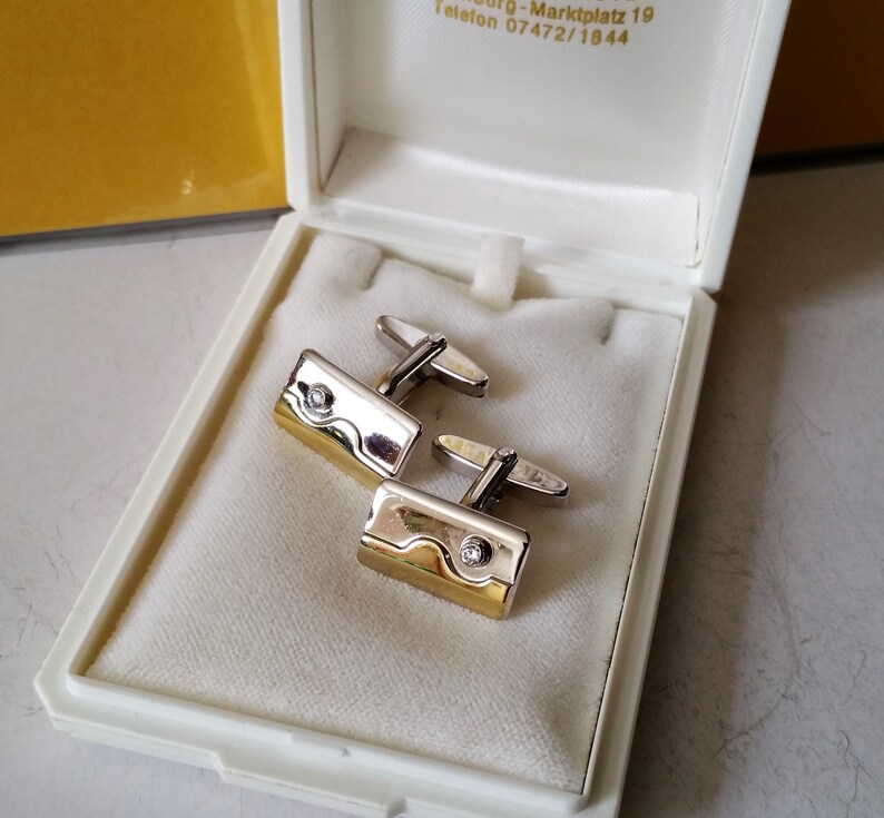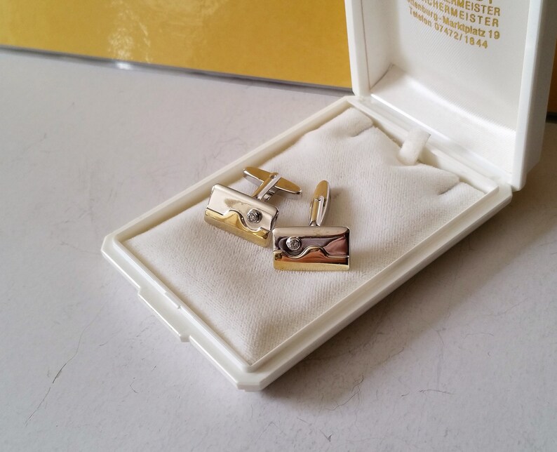 Manschettenknöpfe Cufflinks Silber 925 teilvergoldet Kristallstein edel Vintage MS166
