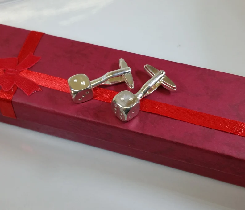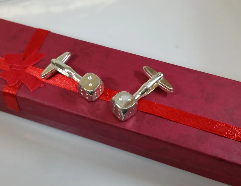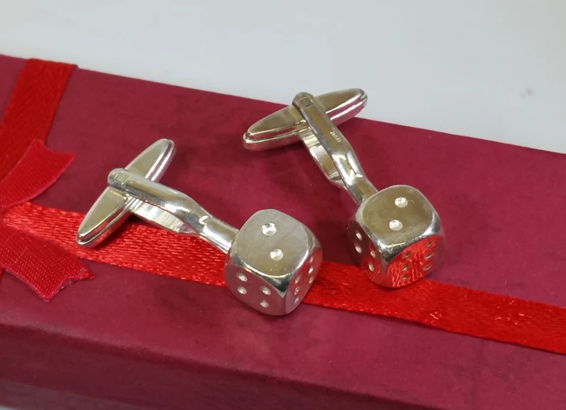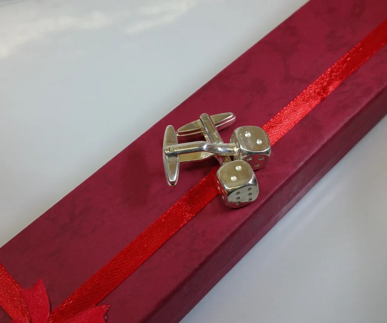 Witzige massive Manschettenknöpfe / Cufflinks aus Silber 925 in Form eines Würfels.
