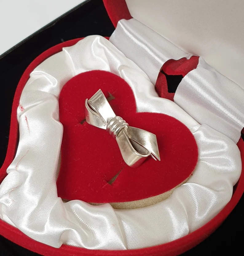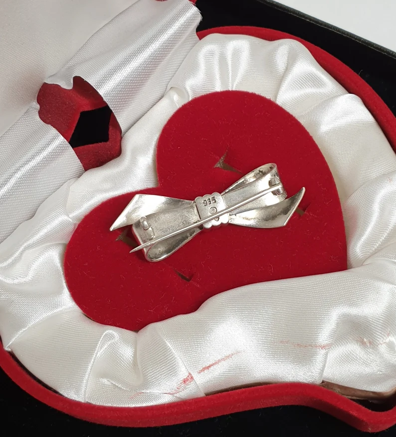 Eine wunderschöne nostalgische Anstecknadel / Brosche in Form einer Schleife aus Silber 935 gefertigt.