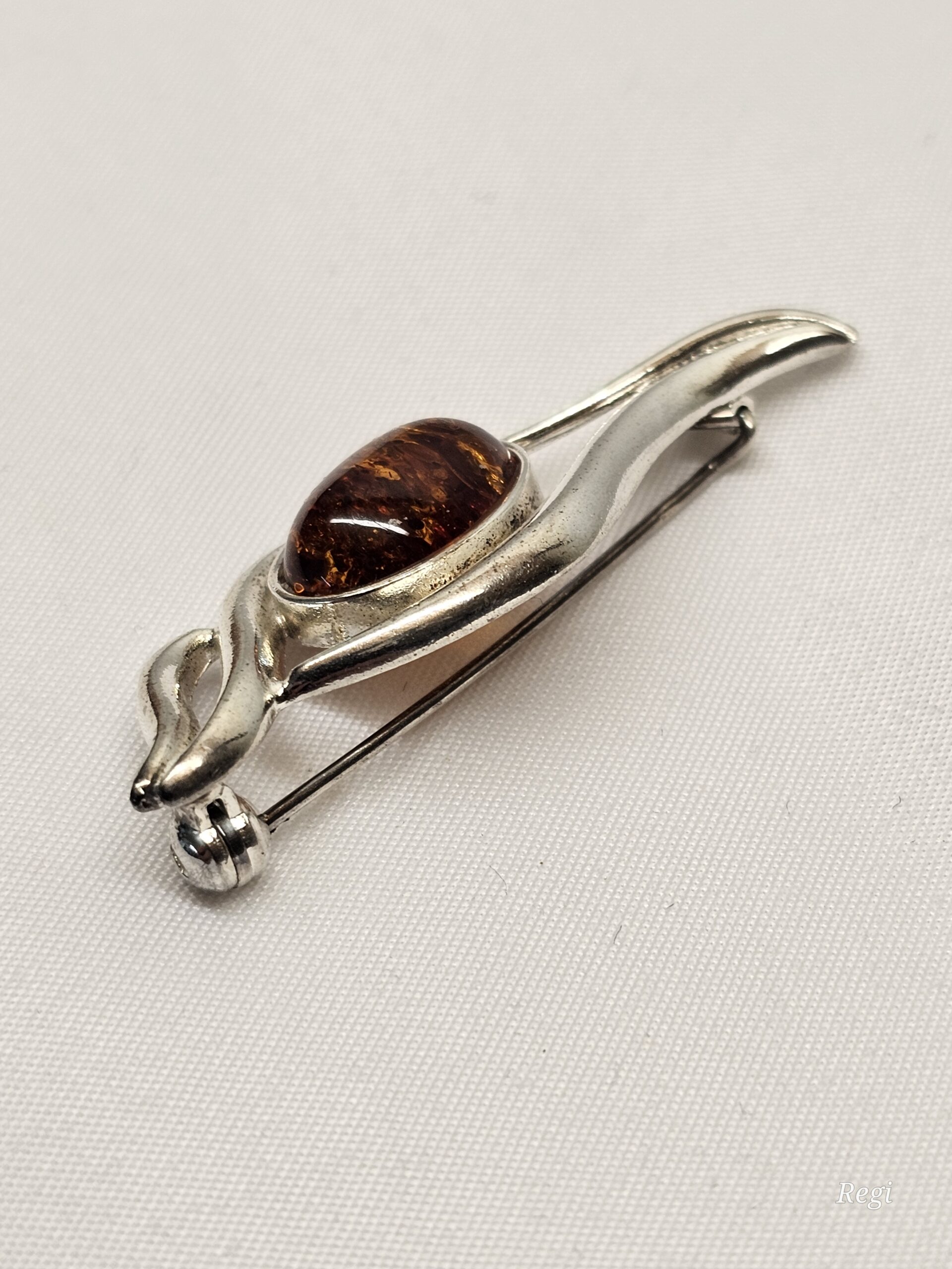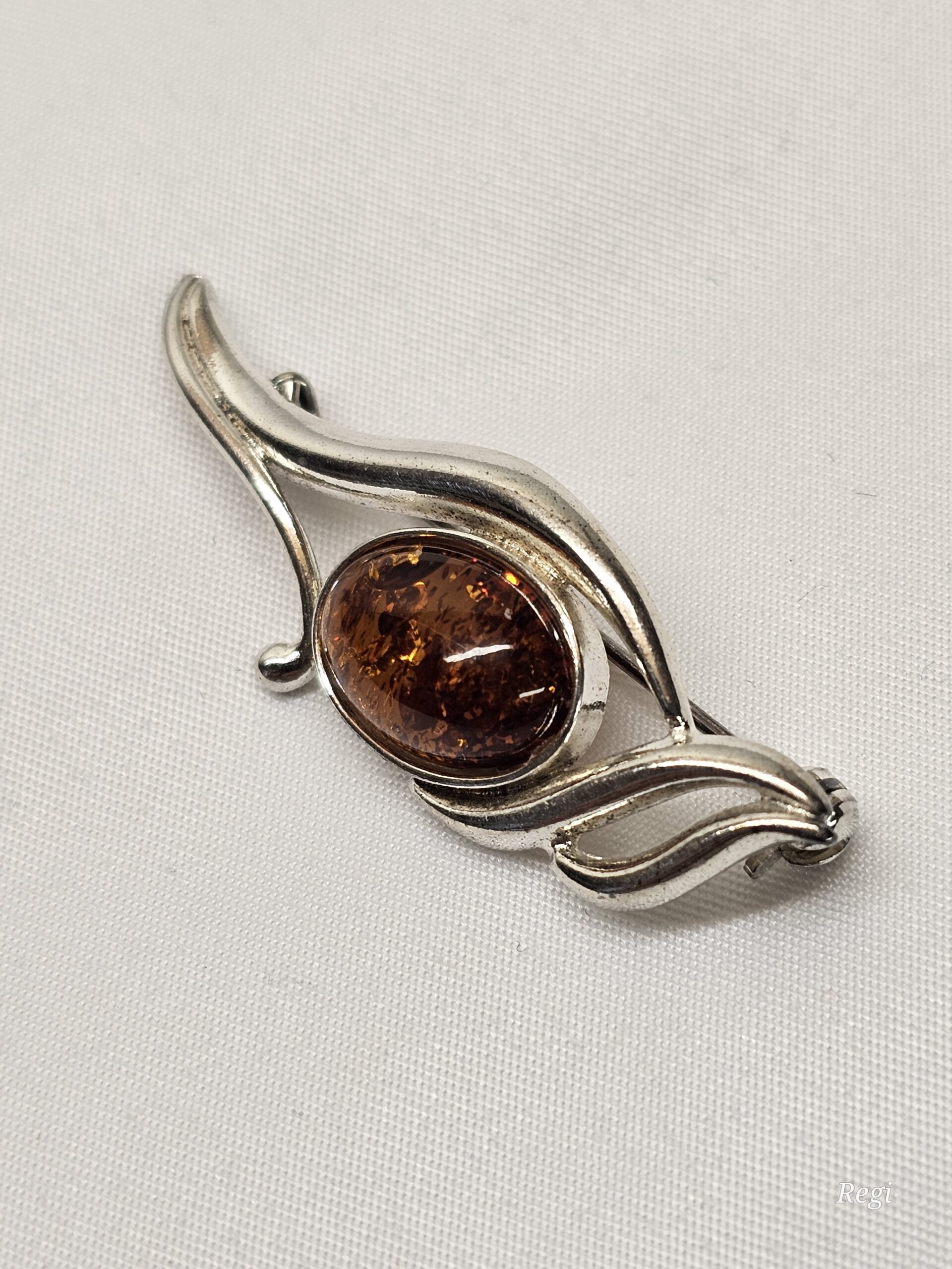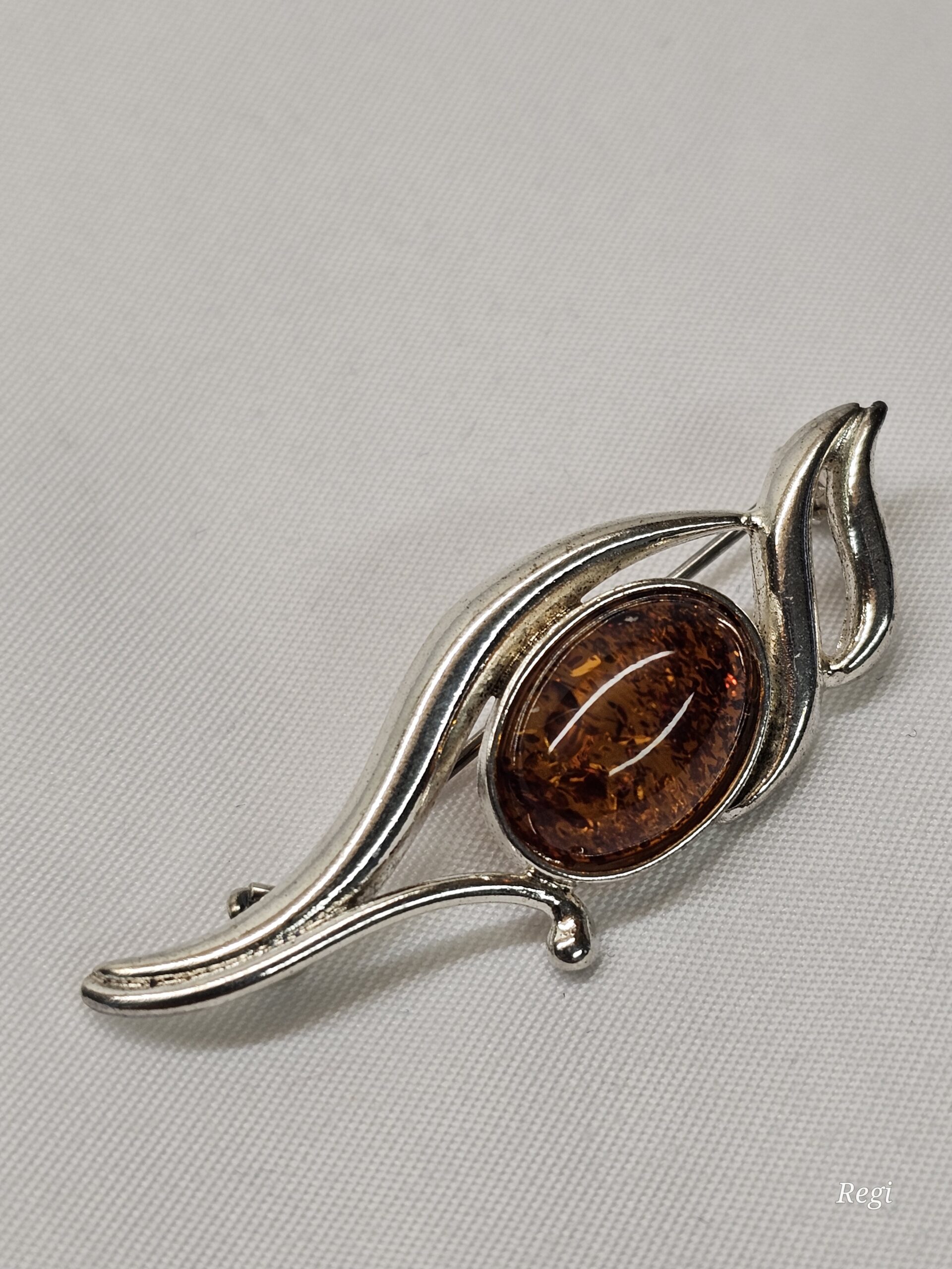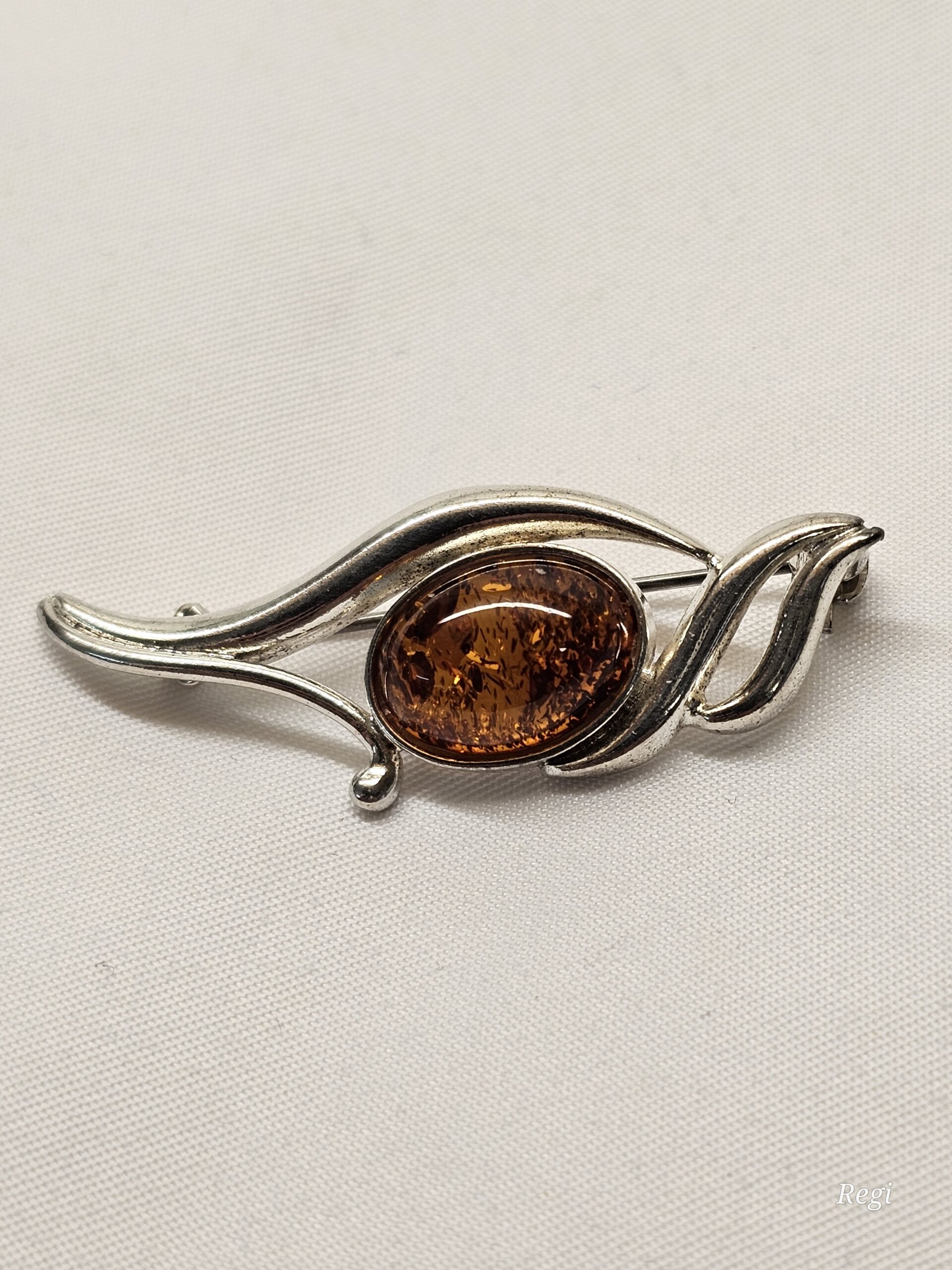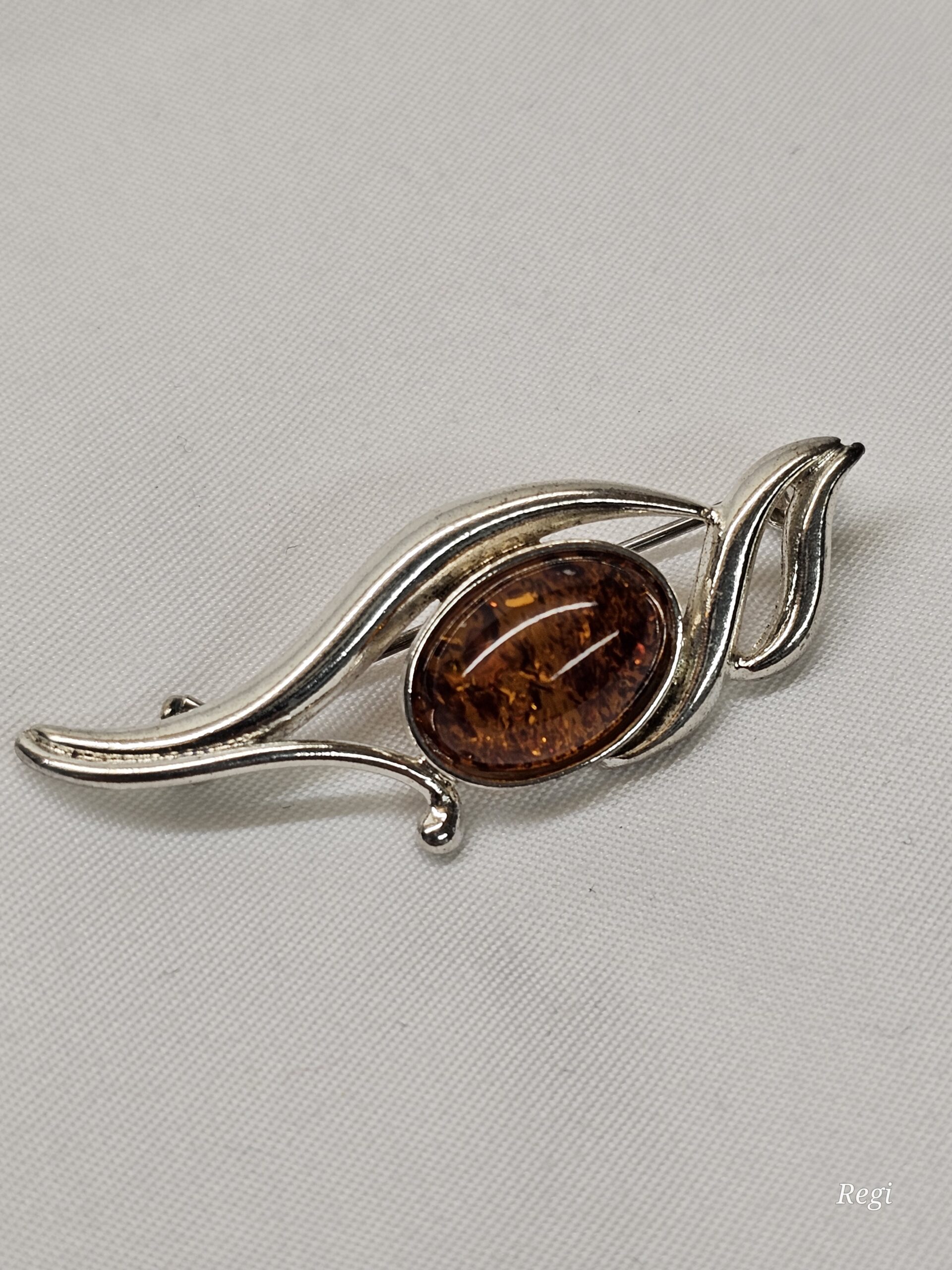 Nostalgische Brosche / Anstecknadel Silber 925 mit Bernstein und einer hübsch designten Fassung.