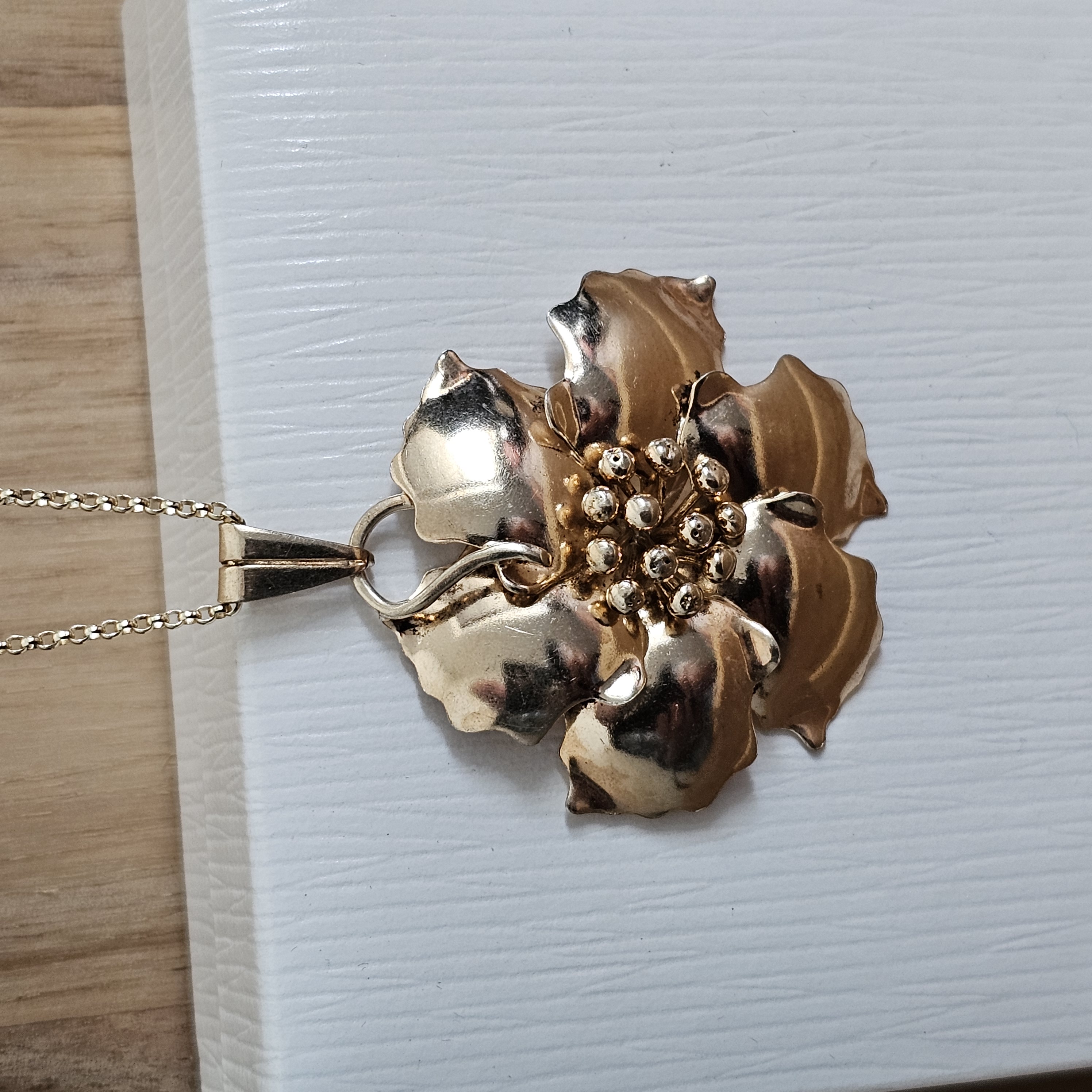 Nostalgische Blume Blüte Anhänger ohne Kette Silber 835 mit einem Hauch von Vergoldung Shabby Vintage elegant SKA1339