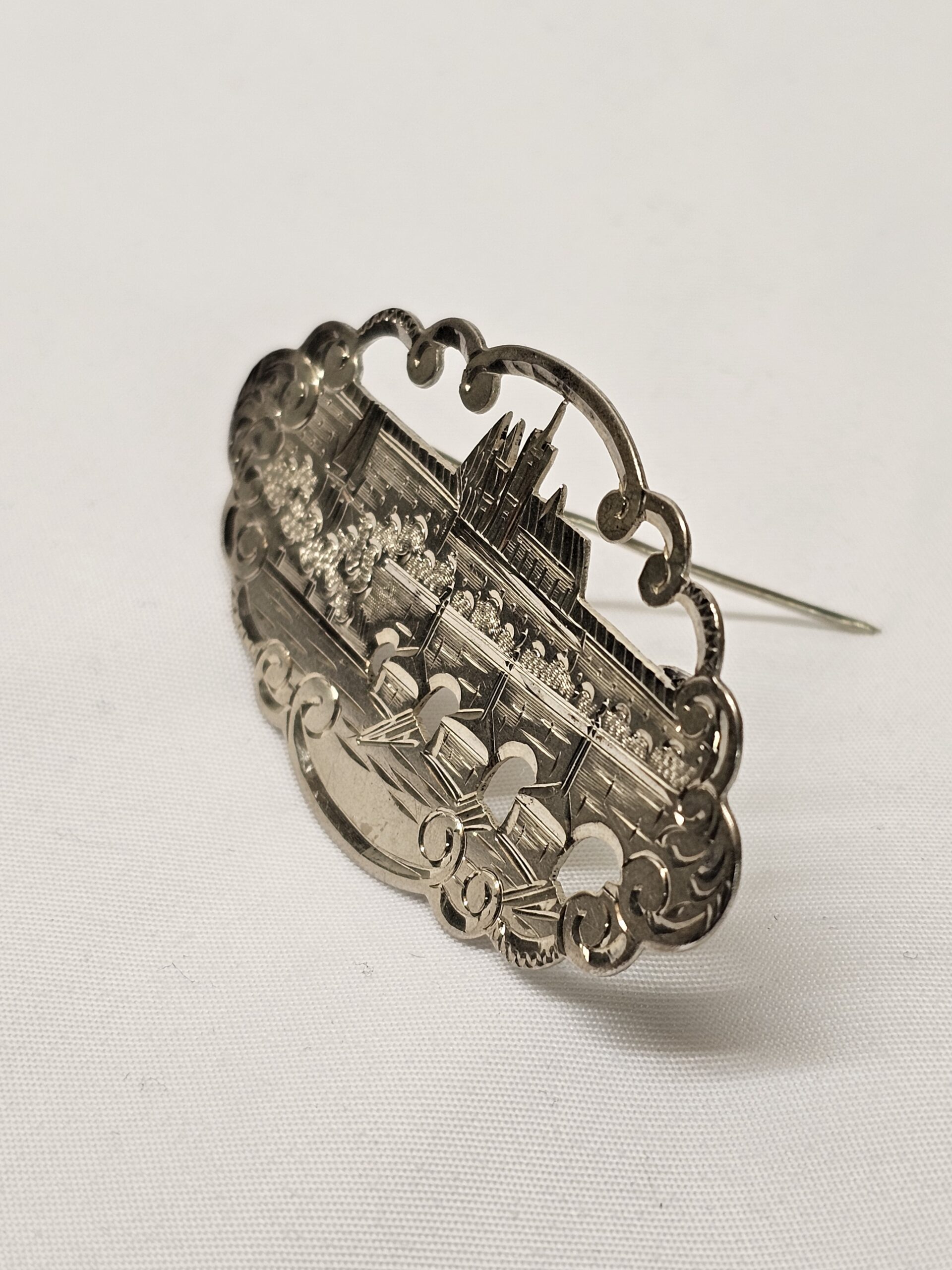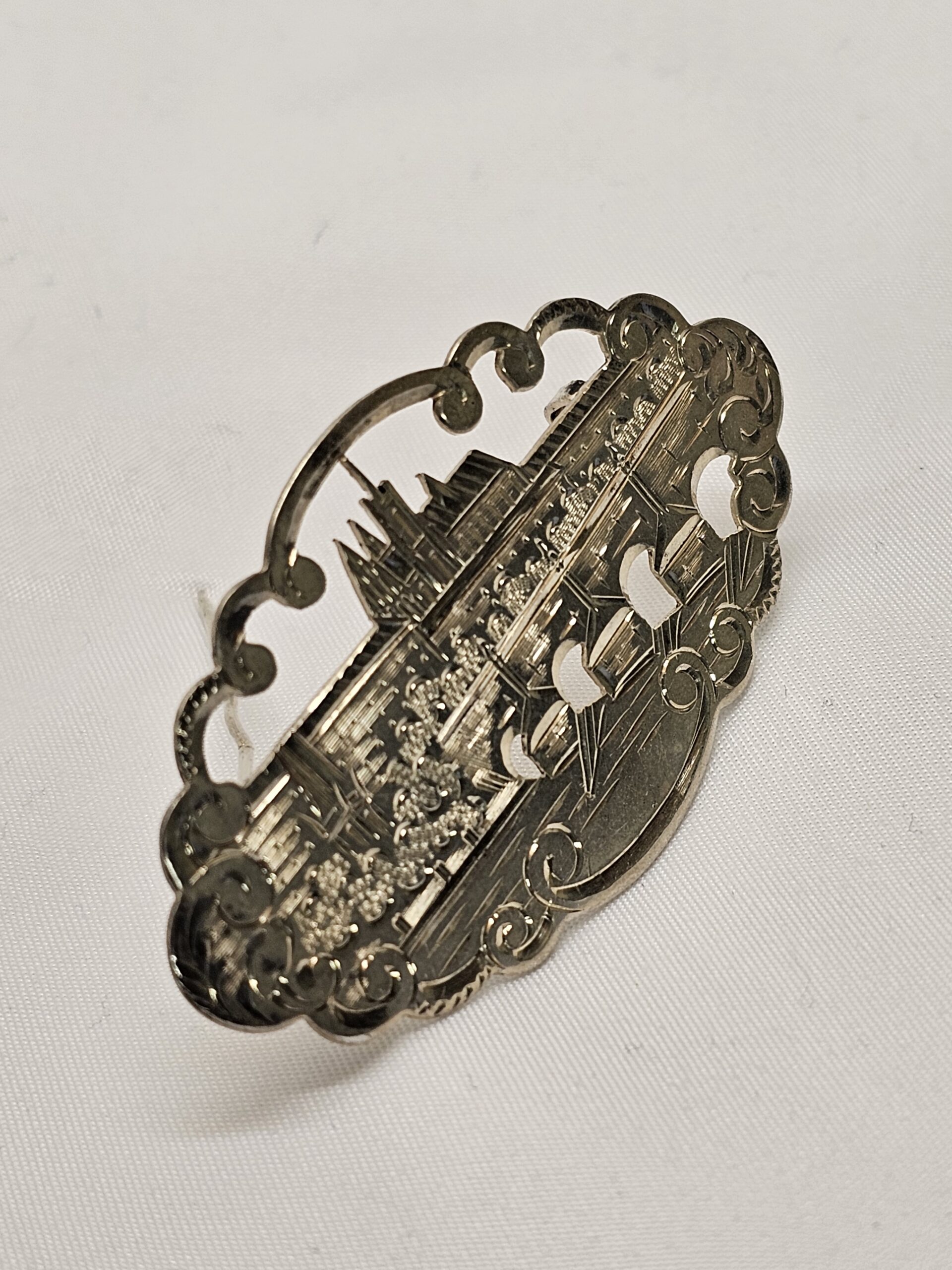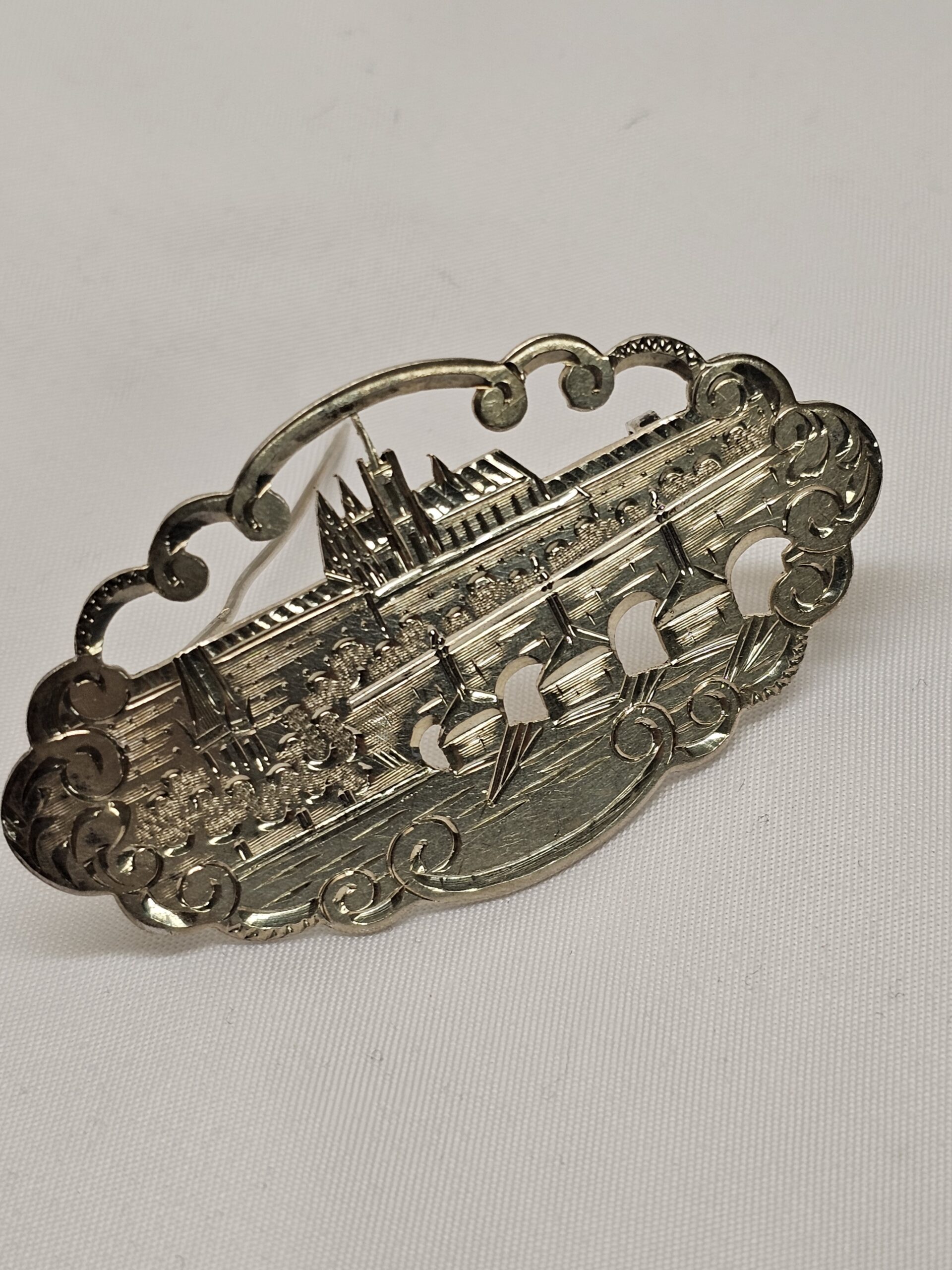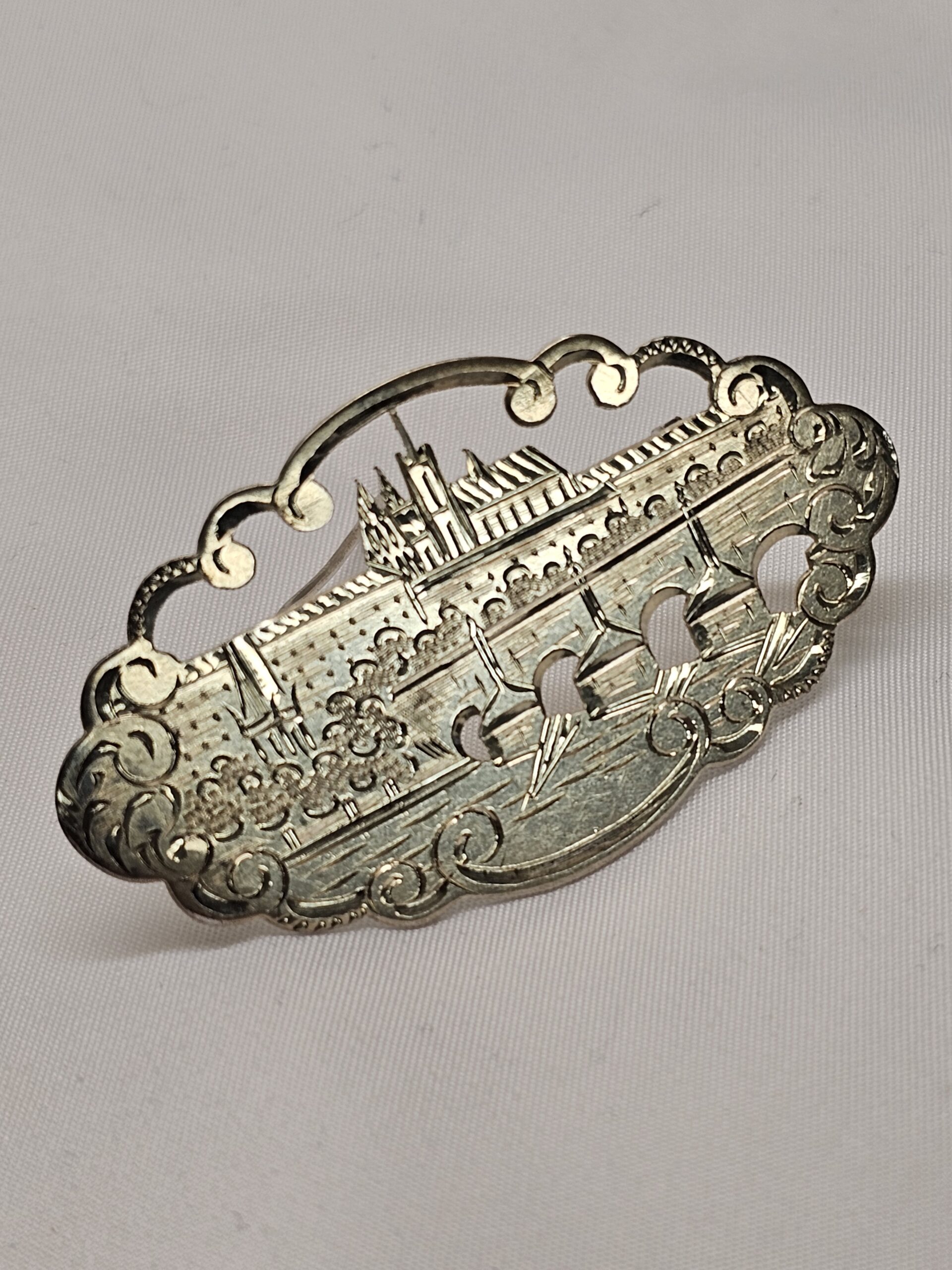 Schöne Vintage Brosche mit der Stadtansicht von Prag. Handgearbeitetes Stück, Shabby-Vintage-Eleganz!