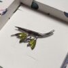Nostalgische Brosche / Anstecknadel aus Silber 925, in Form eines Zweiges gestaltet und mit Peridotsteinen geschmückt. Ein einzigartiges Schmuckstück!