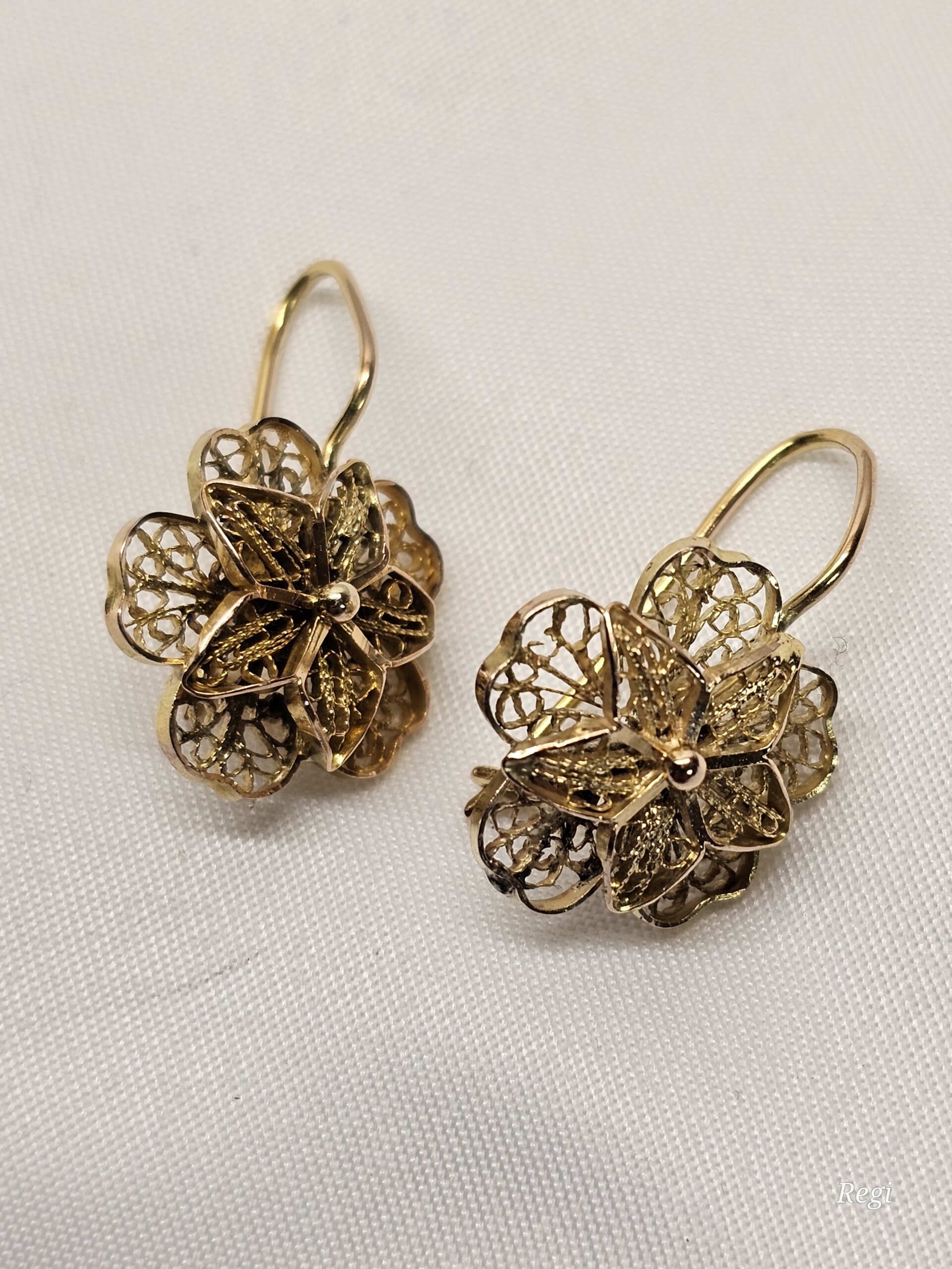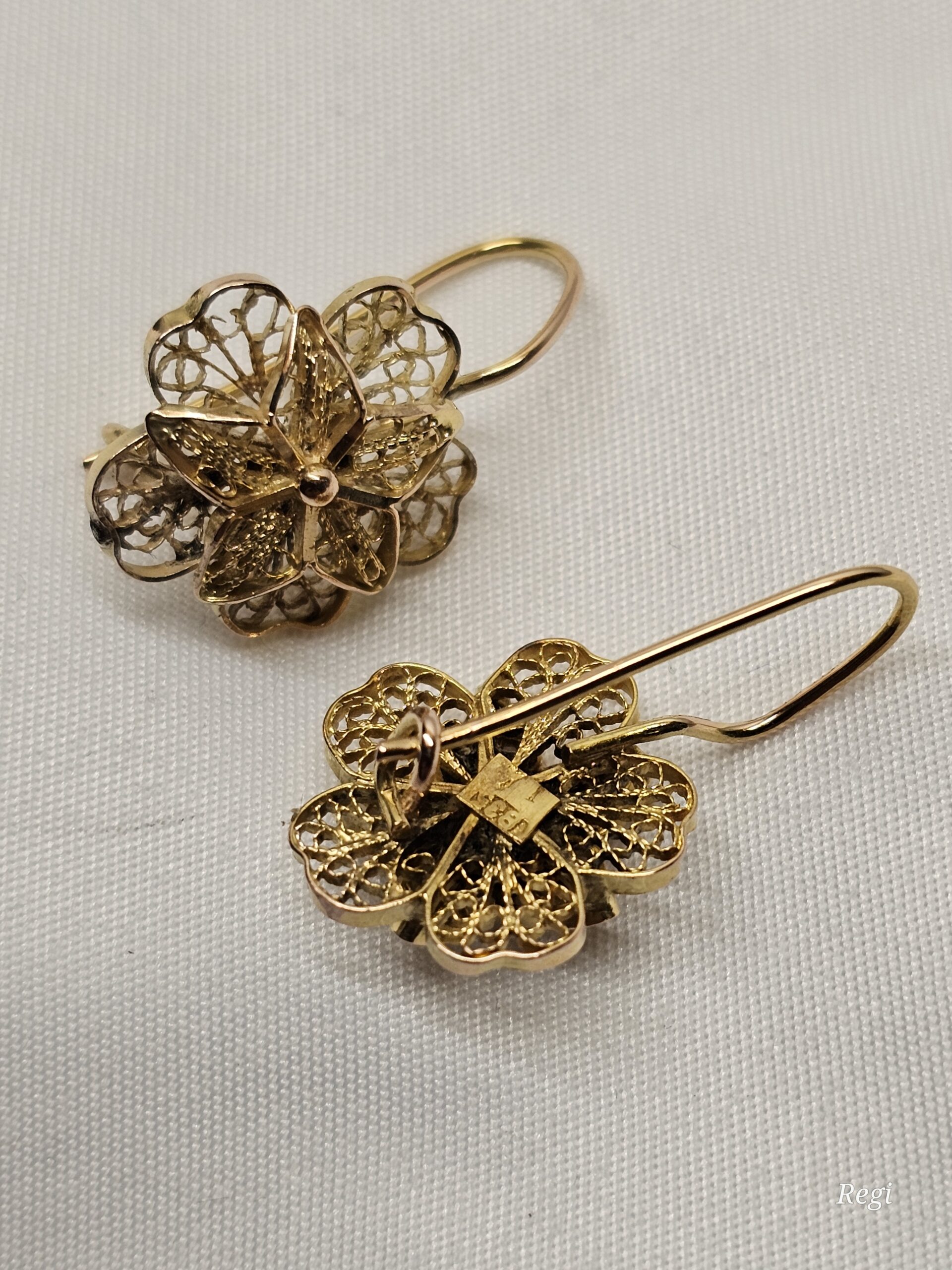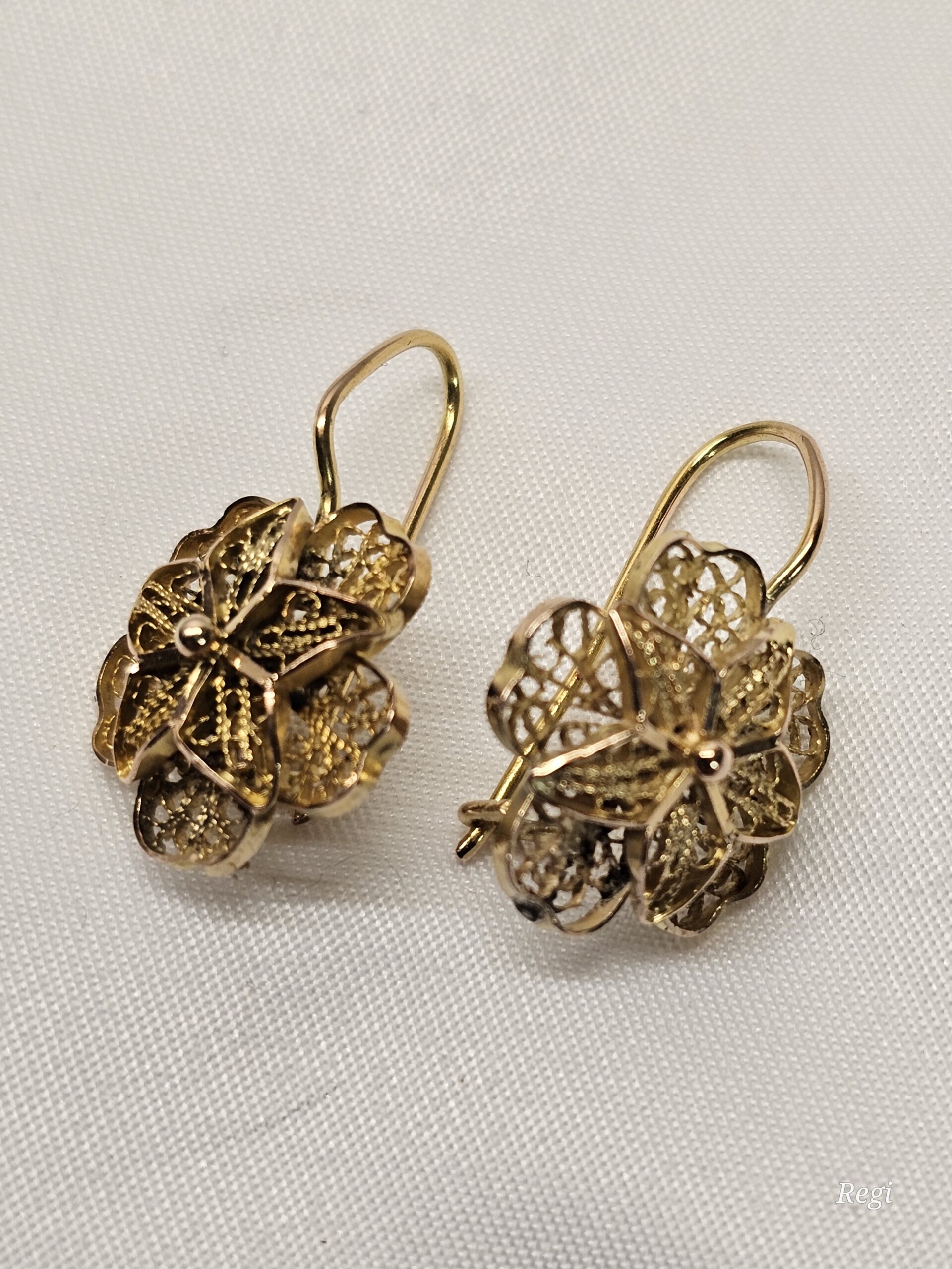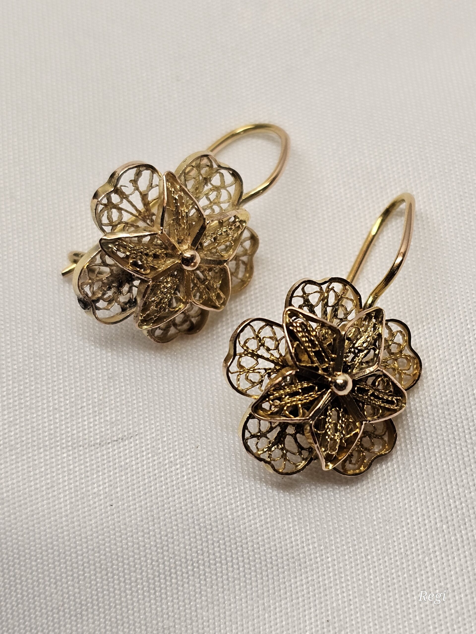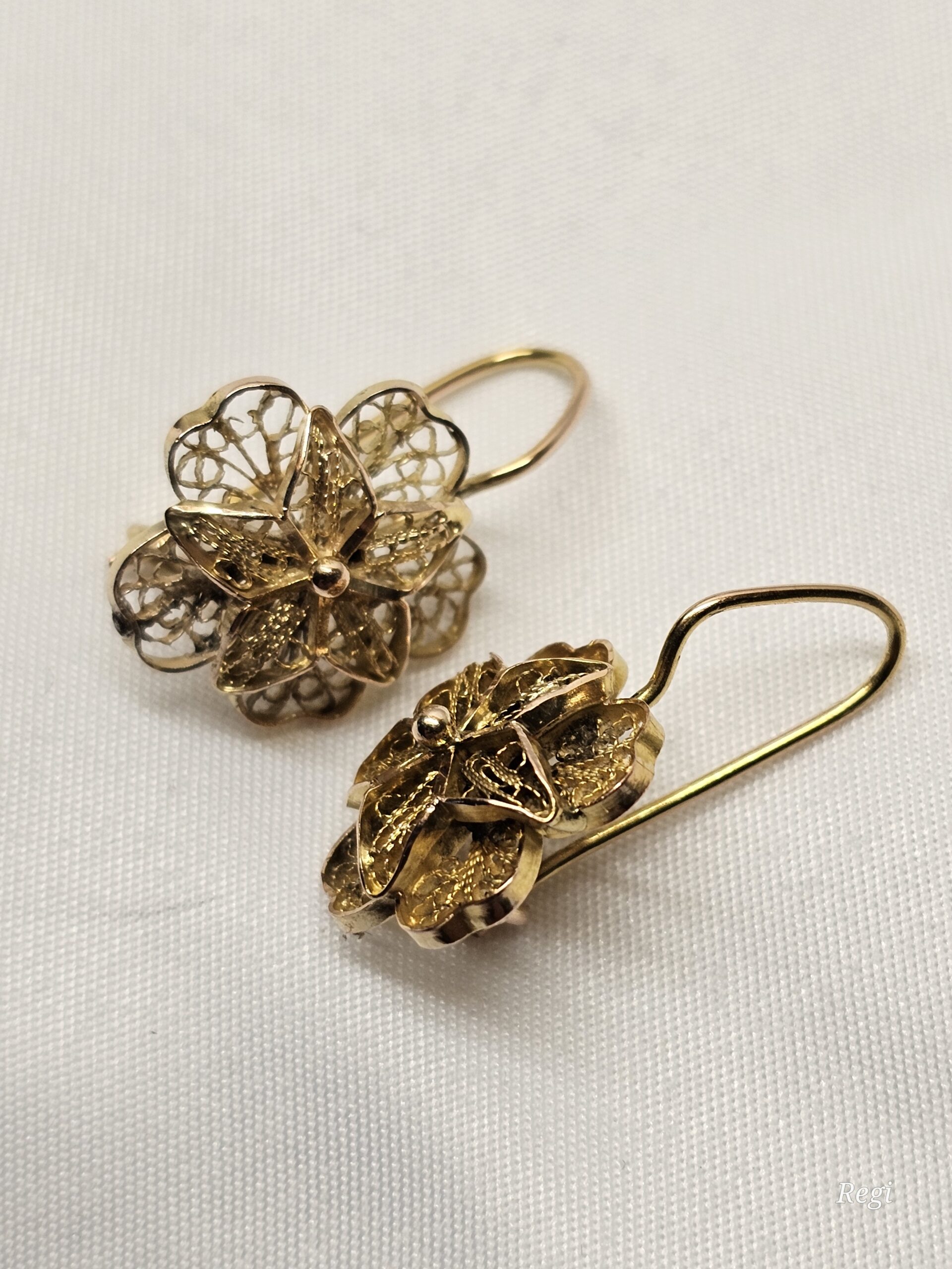 1 Paar Nostalgische Ohrringe / Ohrhänger / Ohrhaken Silber 835, vergoldet. Das Design ist ein Träumchen, hübsch und filigran ausgearbeitete Blüten-/ Blumen als Ohrringkopf.