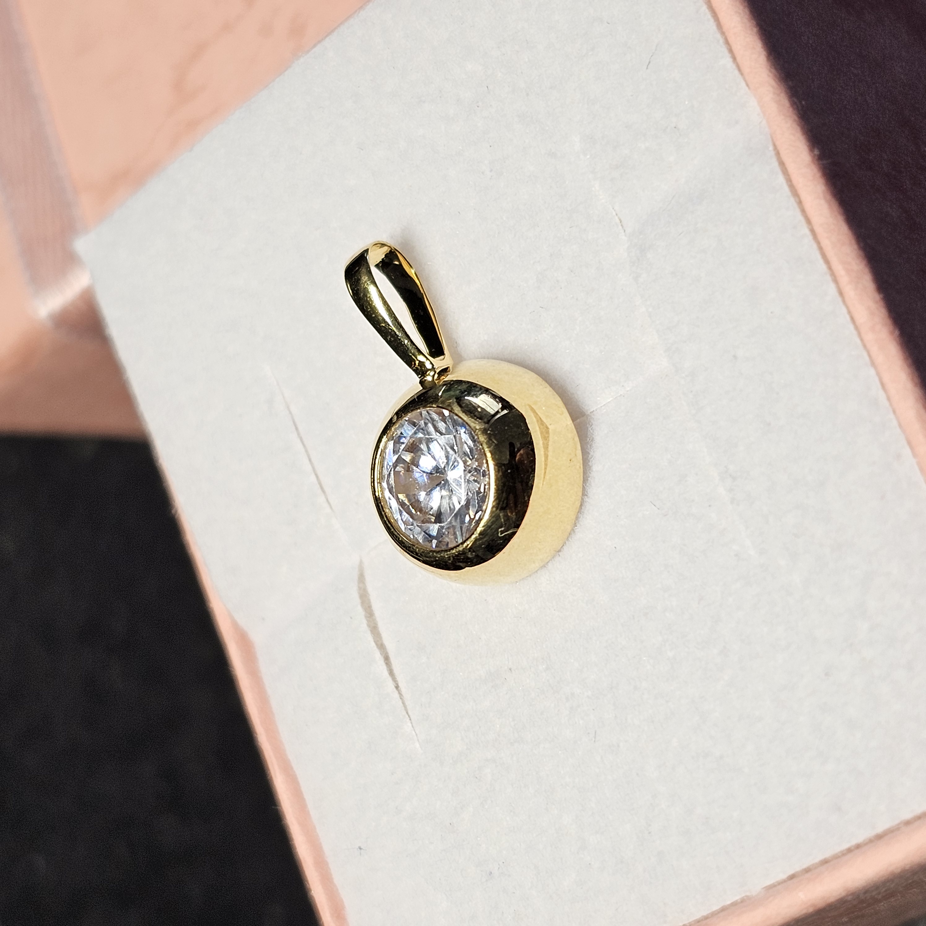 Toller Vintage-Anhänger Gold 333, ein sehr schönes schlichtes Design mit einem Bergkristall besetzt.
