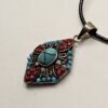 Nostalgischer Anhänger aus Silber 925 mit Türkis & Koralle verziert. Filigrane Gestaltung.
