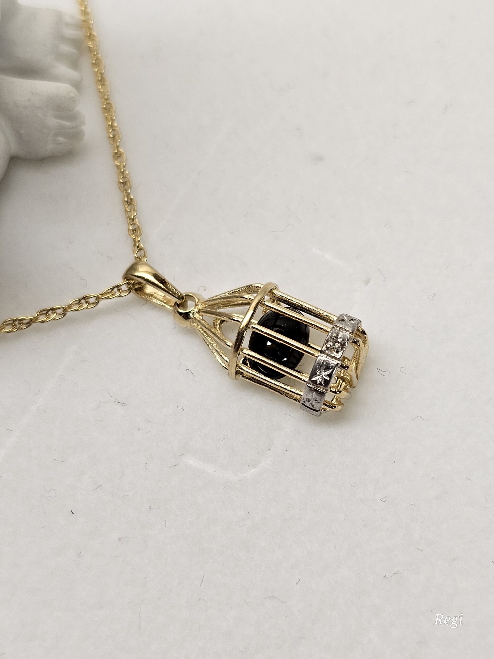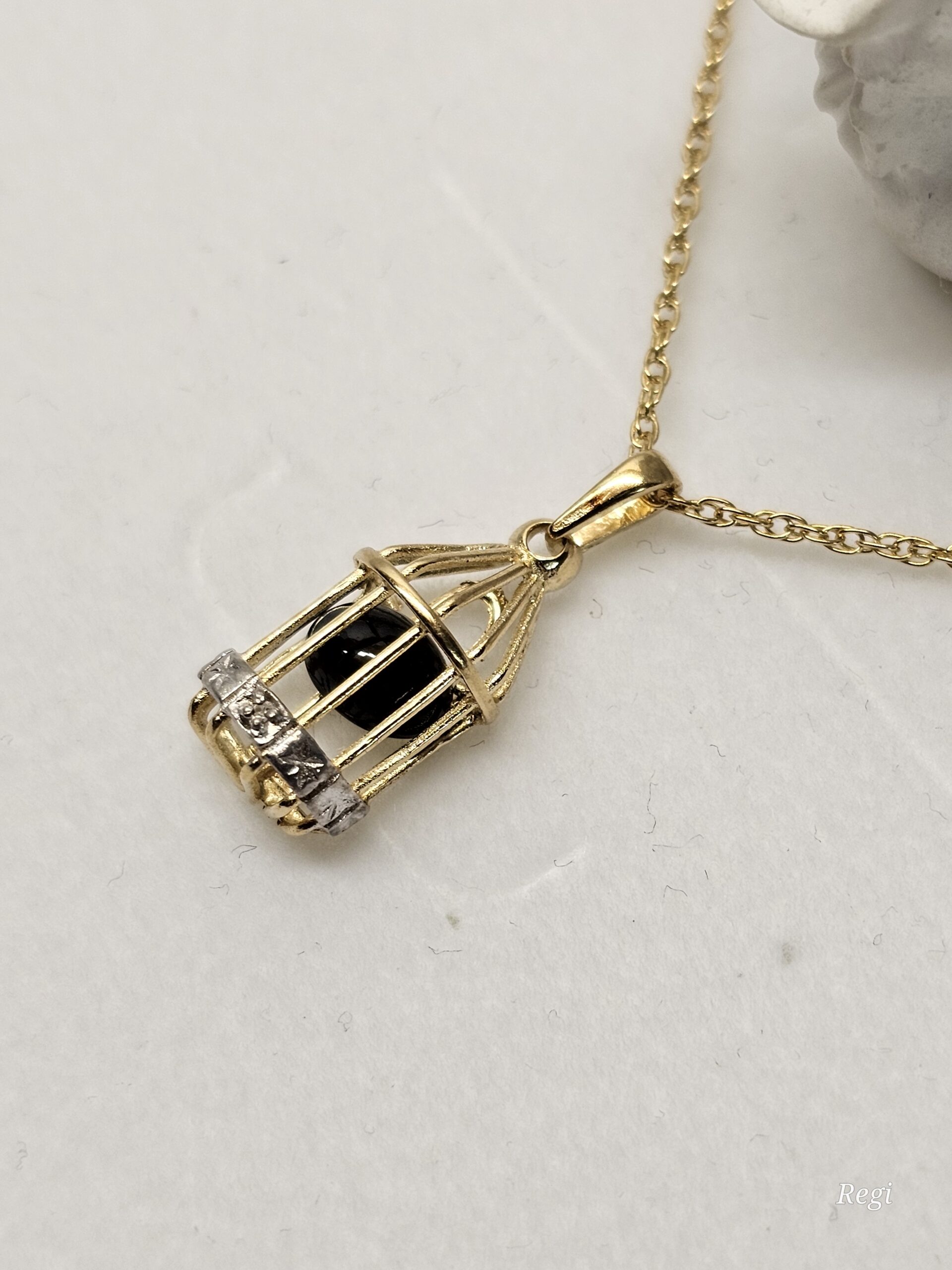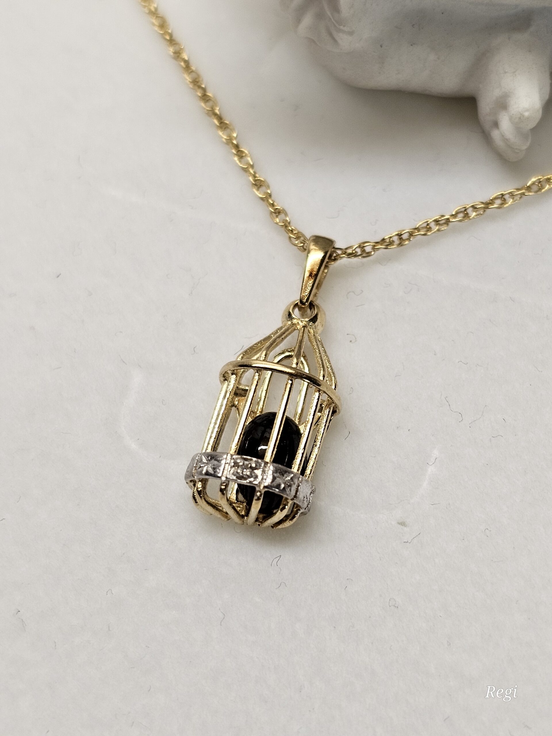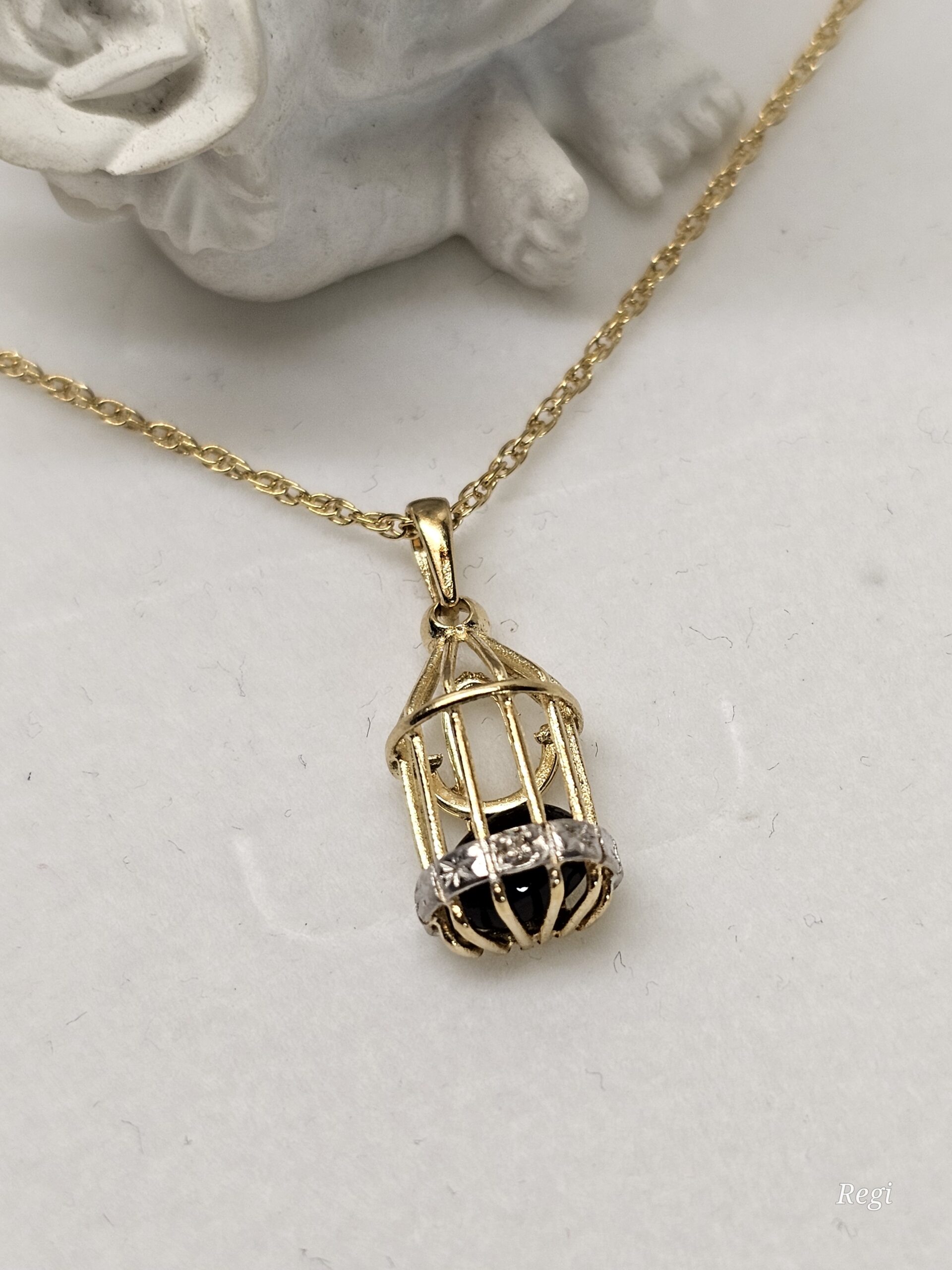 Nostalgischer Anhänger ohne Kette Kleiner Käfig Vogelkäfig Gold 585 teilplatiniert Saphir & kleinstes Diamantsteinchen Vintage selten GAN235