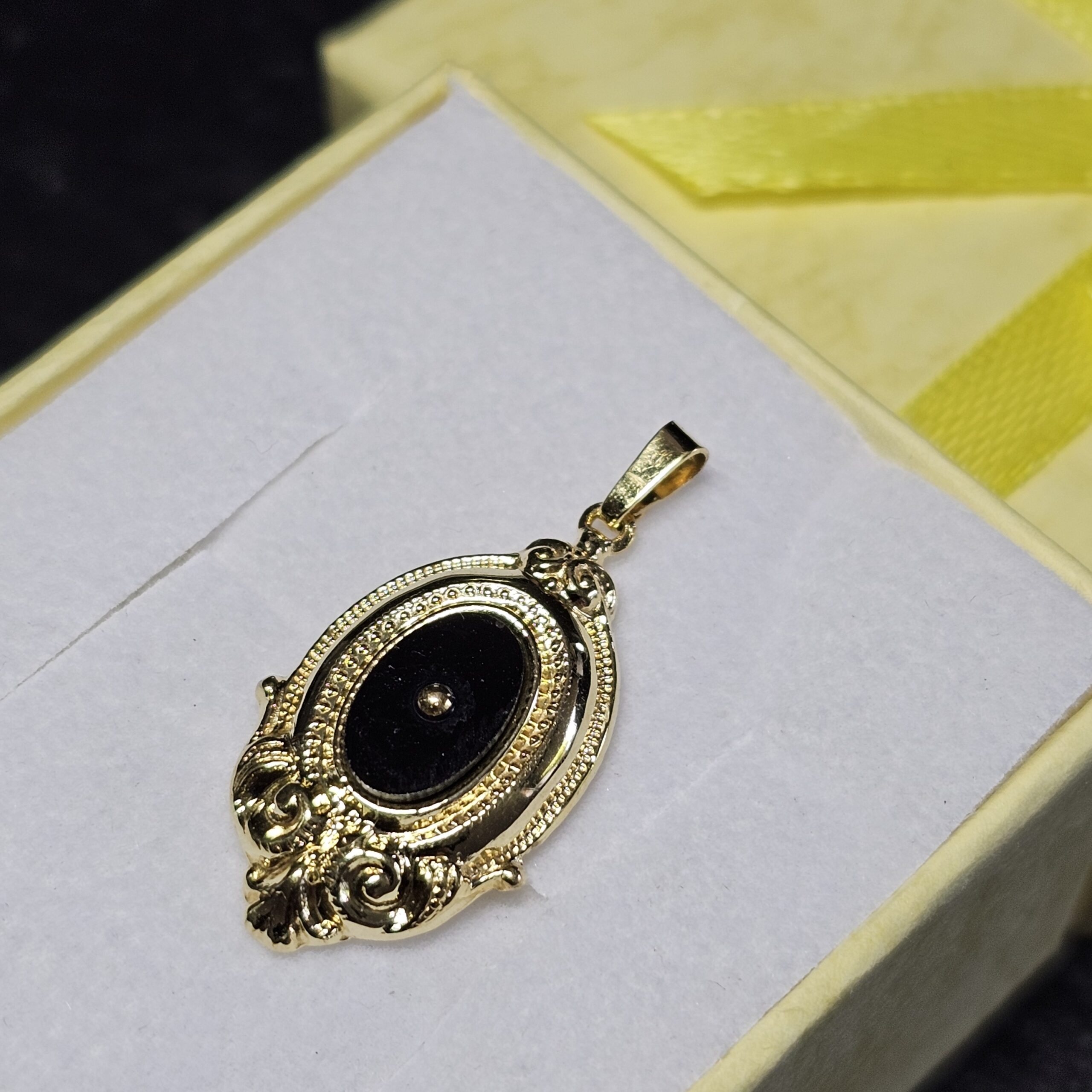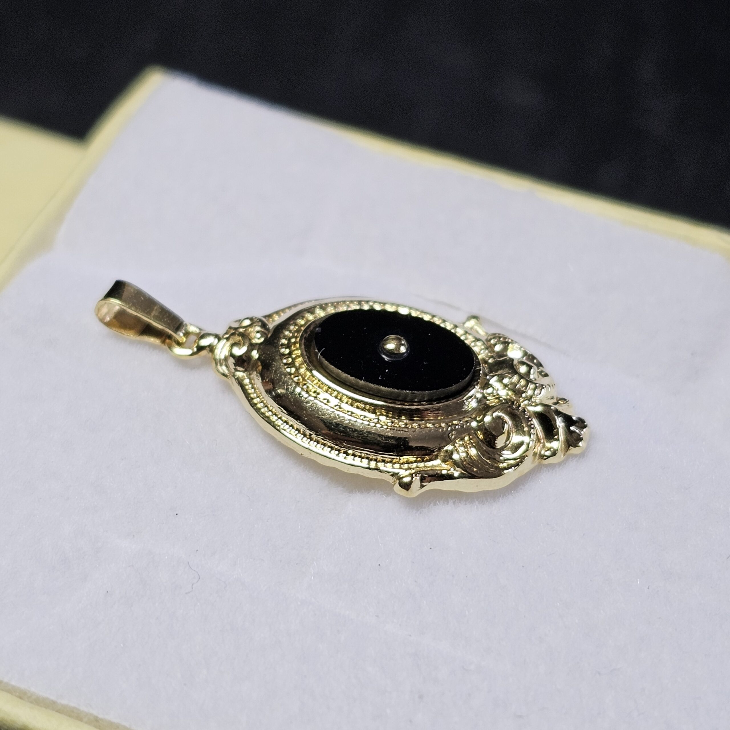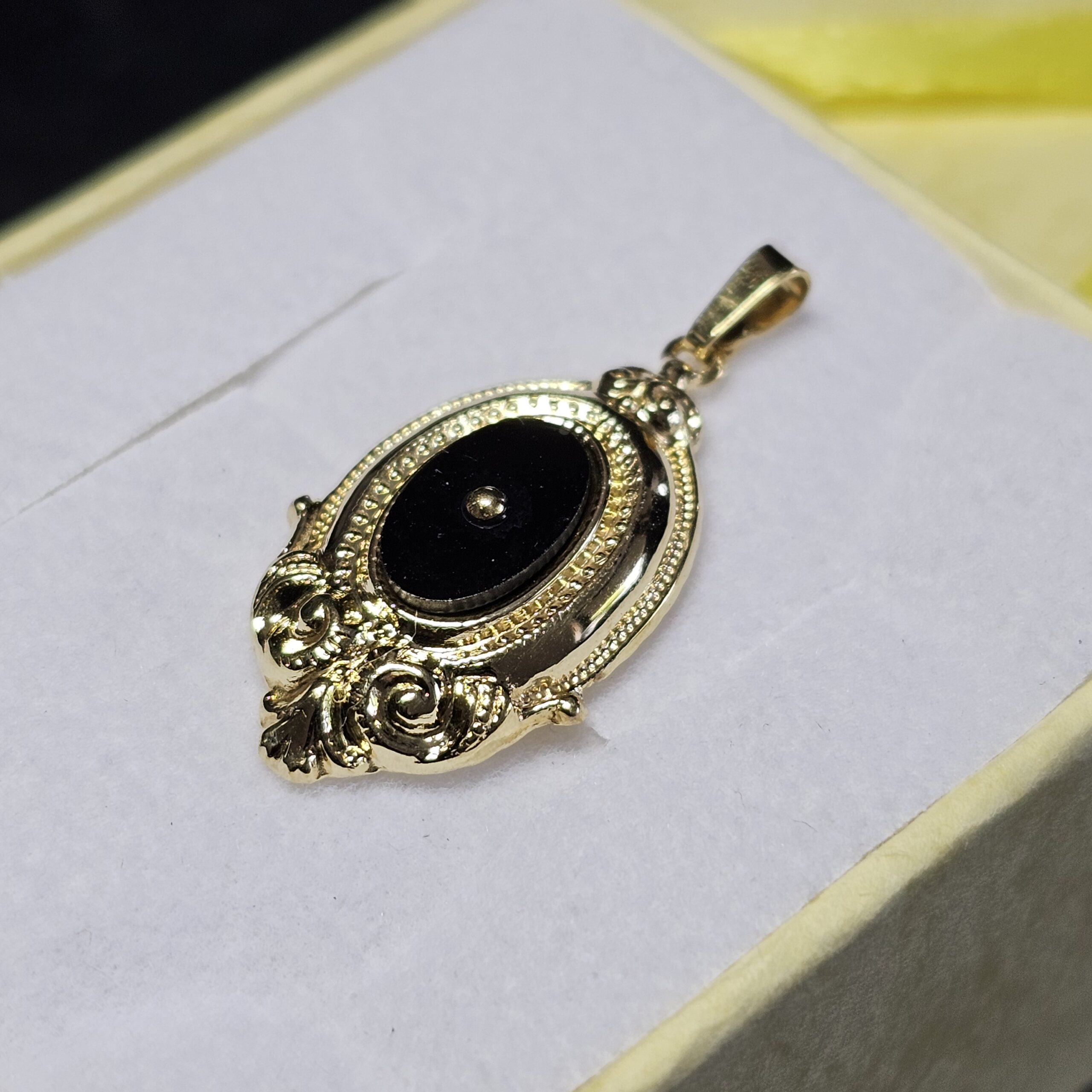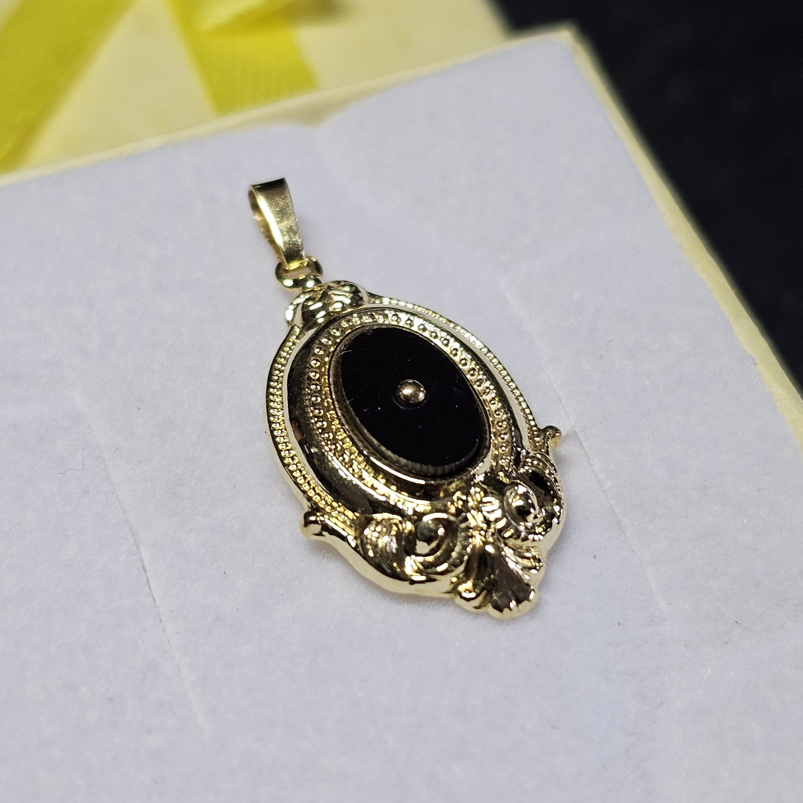 Nostalgischer Art Deco Anhänger Gold Gold 333, edles Shabby Vintage-Design besetzt mit einem schwarzen Onyx. Leichte Verarbeitung.