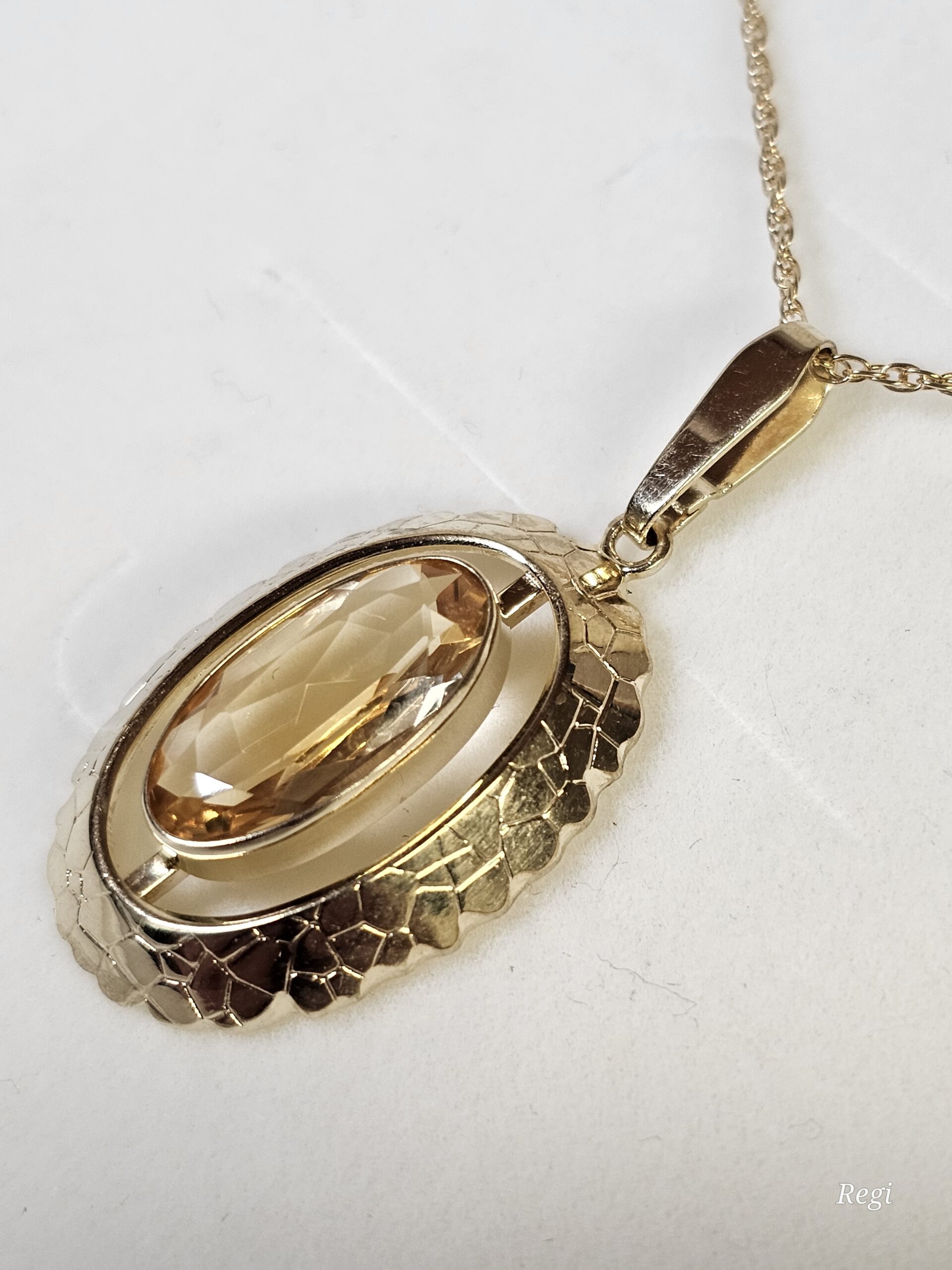 Nostalgischer Anhänger Gold Gold 333, edles Shabby Vintage-Design besetzt mit einem Citrin.