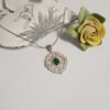 Vintage Anhänger aus Silber 925 in nostalgischem Design gestaltet. Mittig sitzt ein grüner Kristallstein und die Umrandung ist mit kleinen klaren Kristallsteinchen geschmückt.