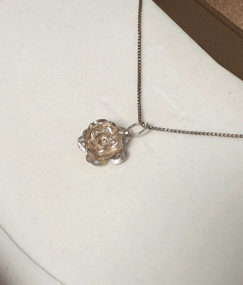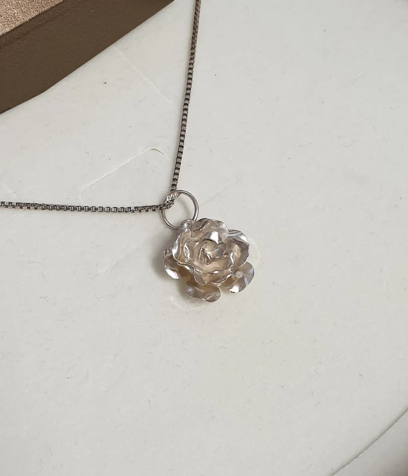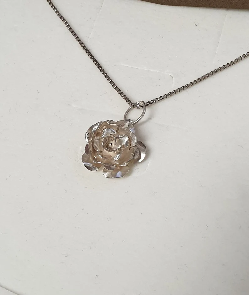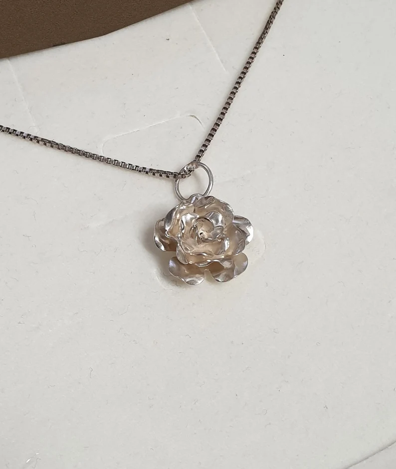Hübsche Silberschmiedearbeit – Anhänger Blume aus Silber 800. Nostalgie pur!