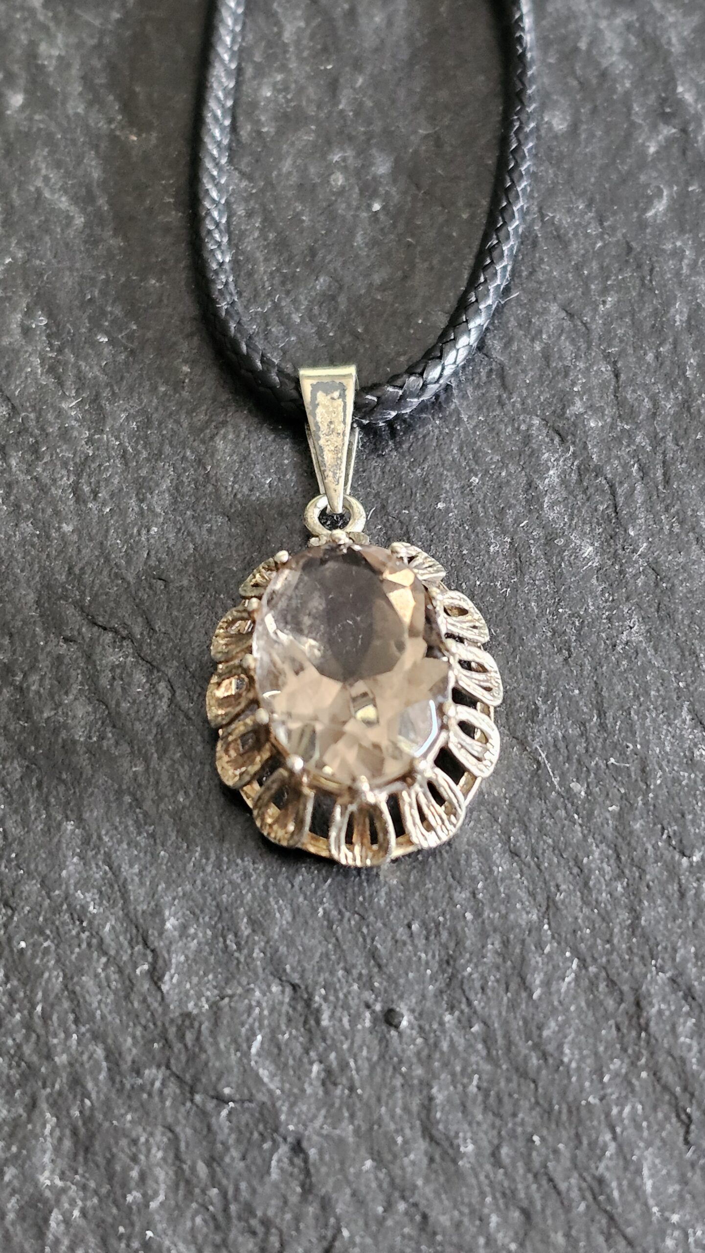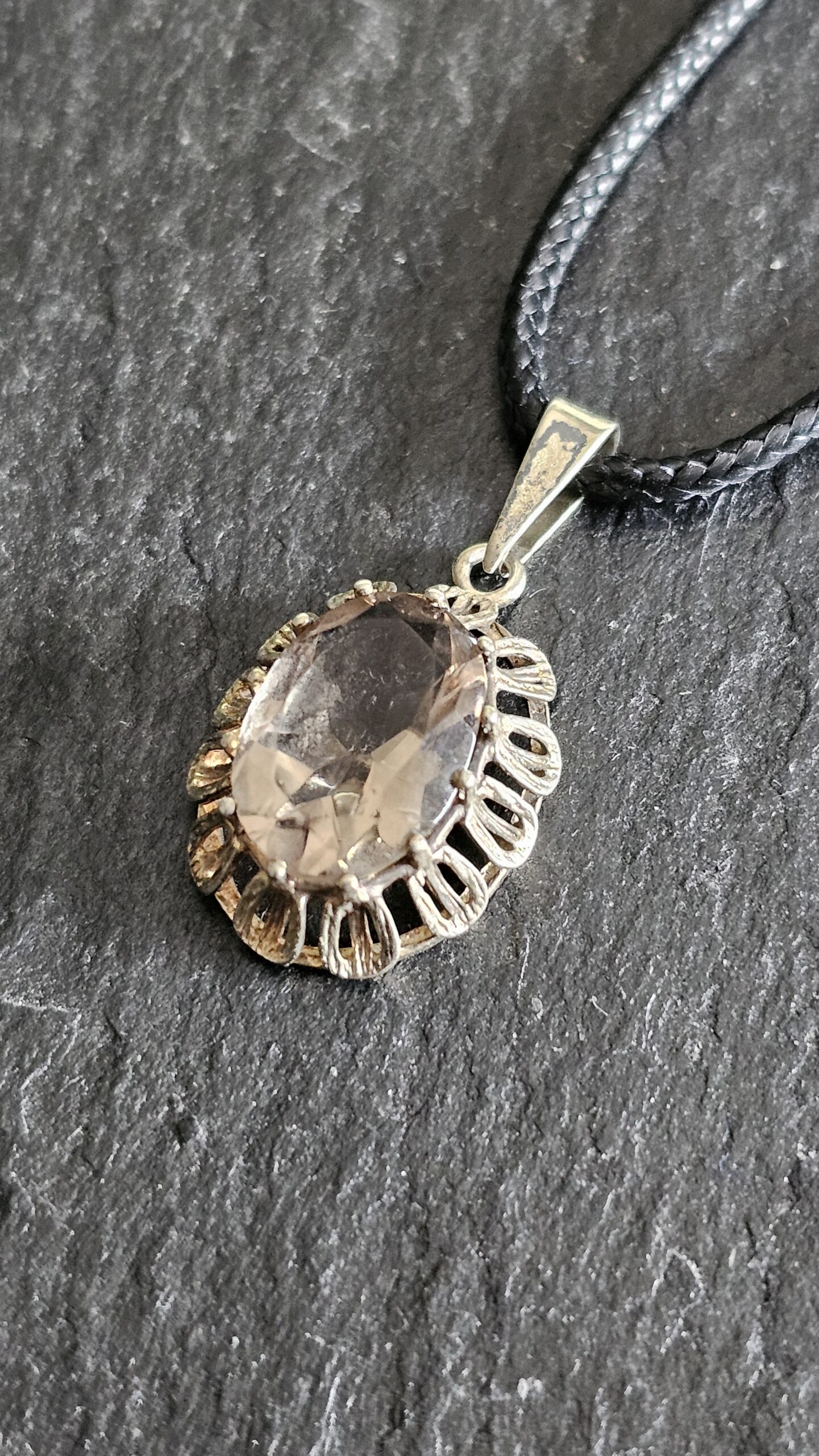 Anhänger Silber 925 im Shabbystyle gestaltet und mit einem Bergkristall geschmückt.