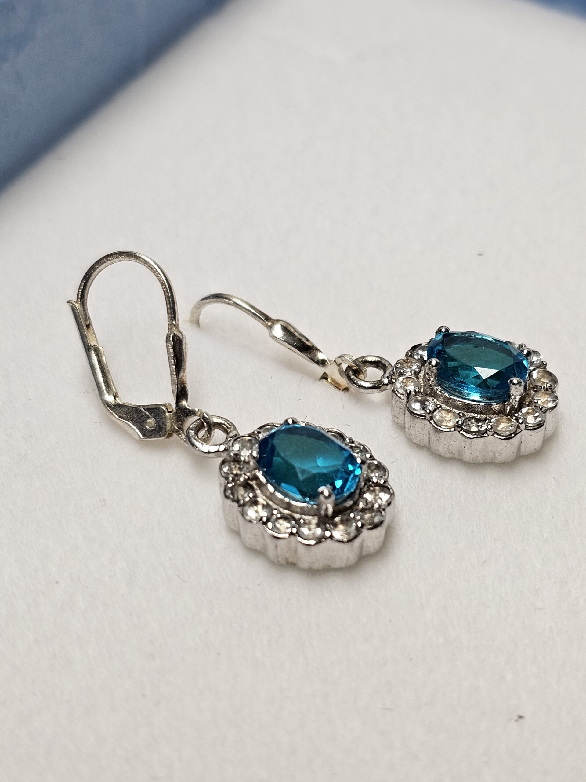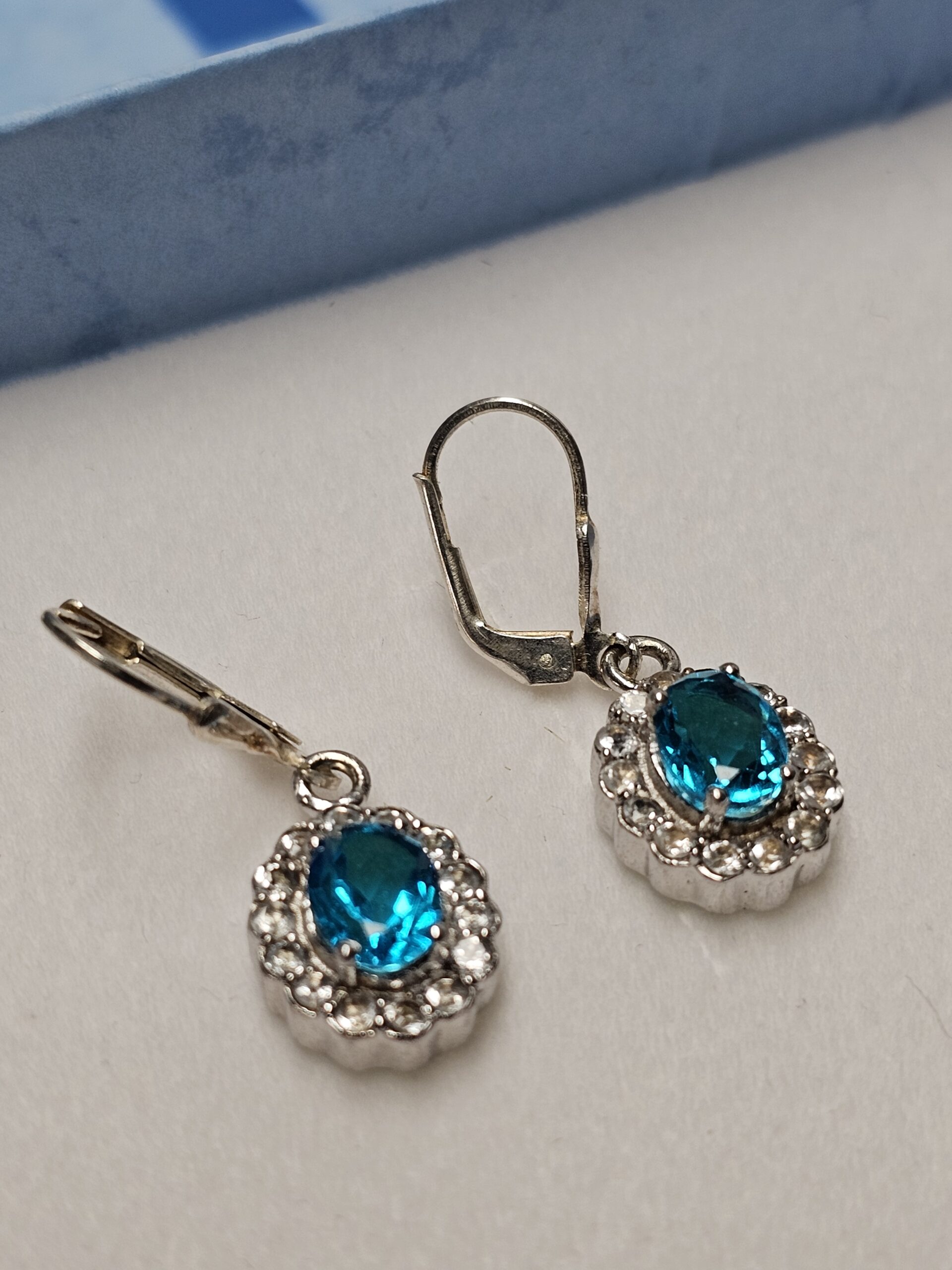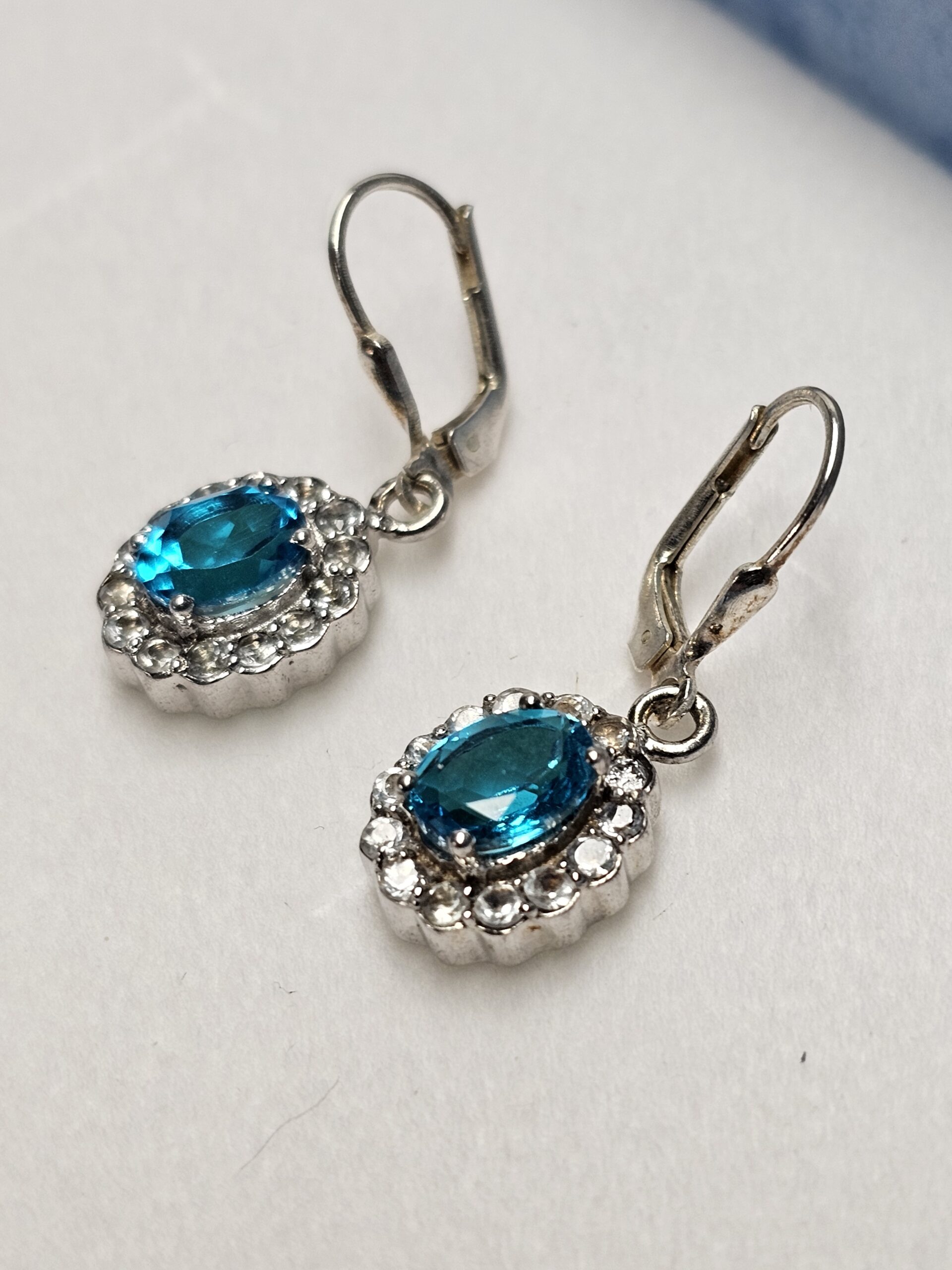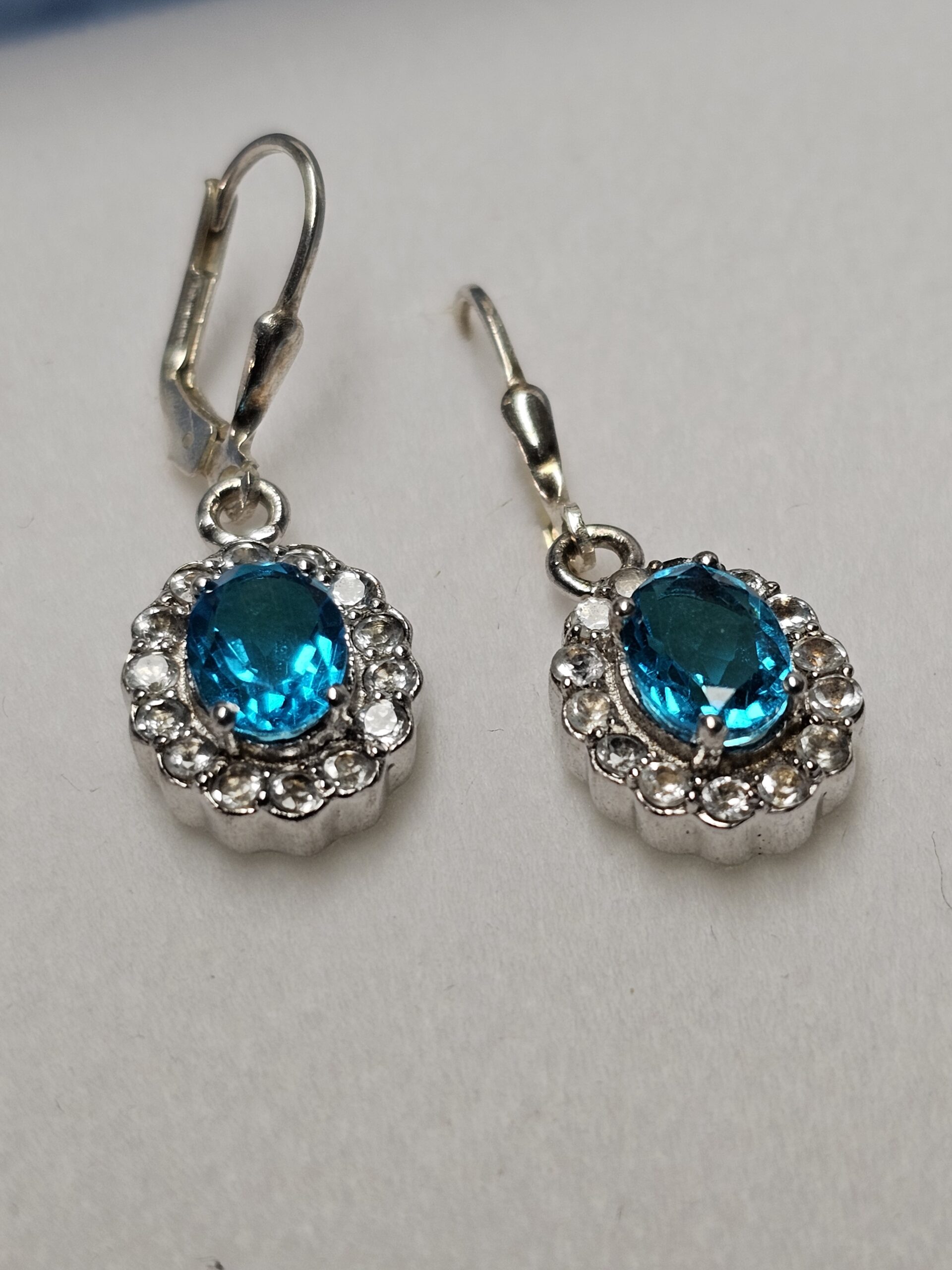 Tolle Ohrringe / Hängeohrringe Silber 925, mit je einem tollen blauen Kristallstein umrandet von kleinen klaren Kristallsteinchen.