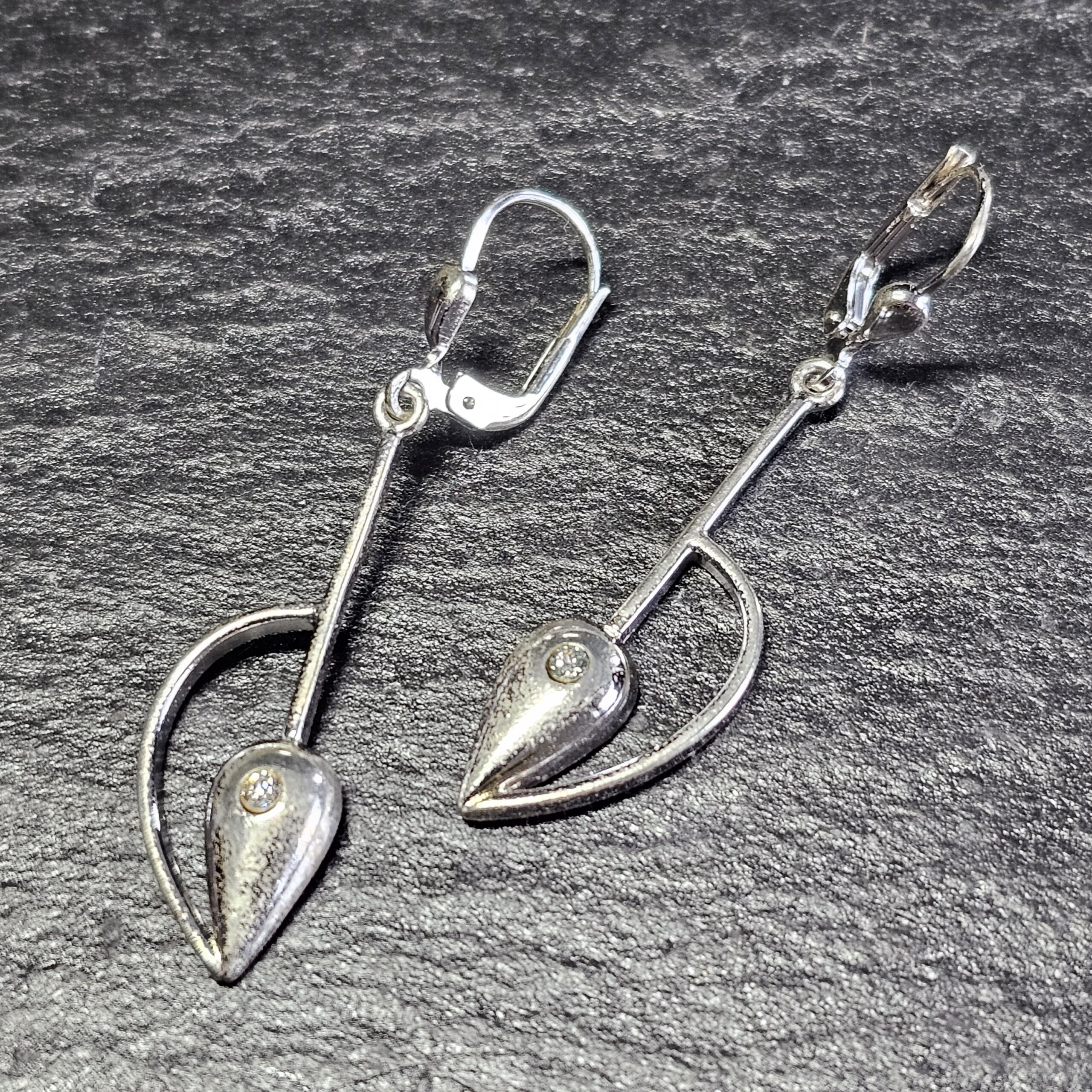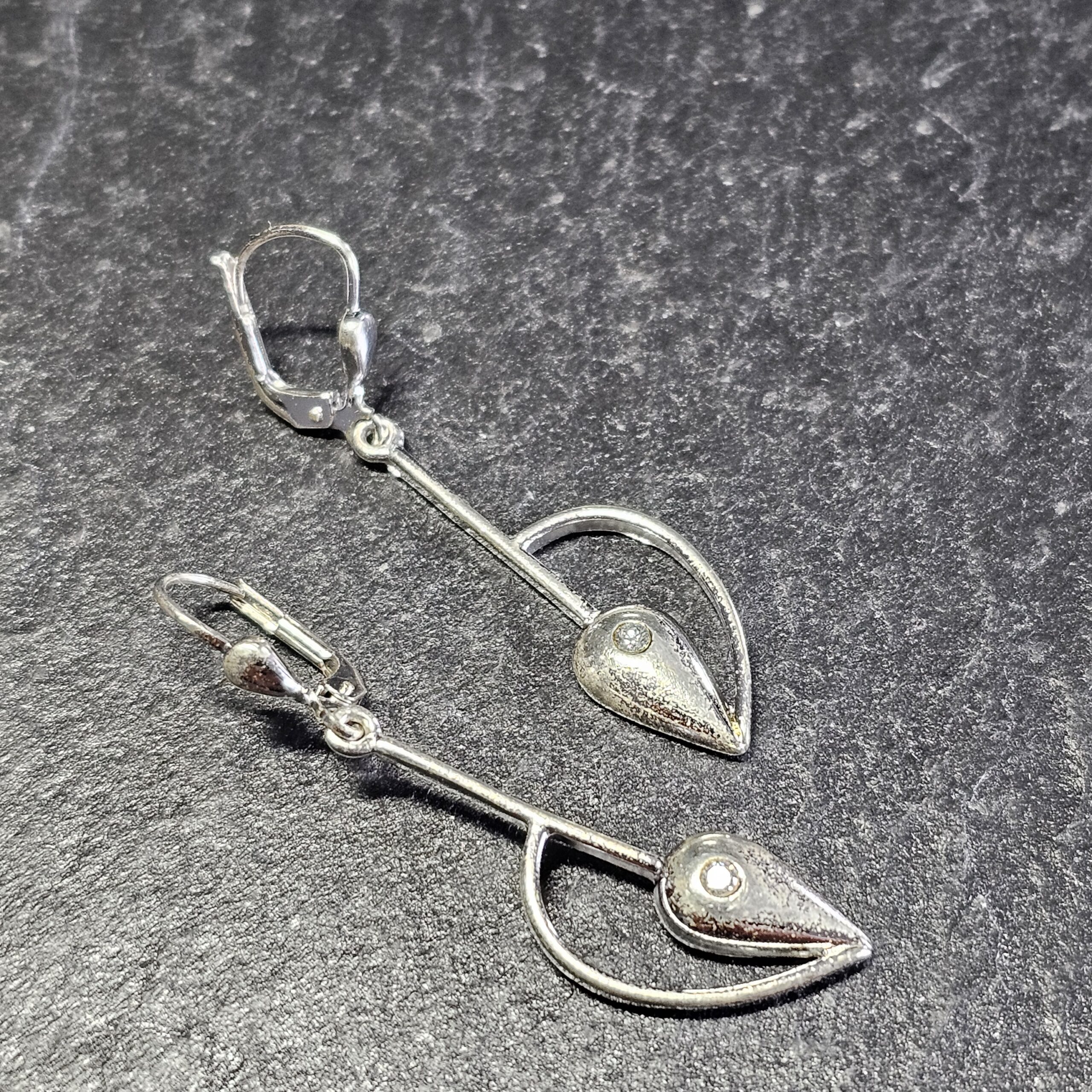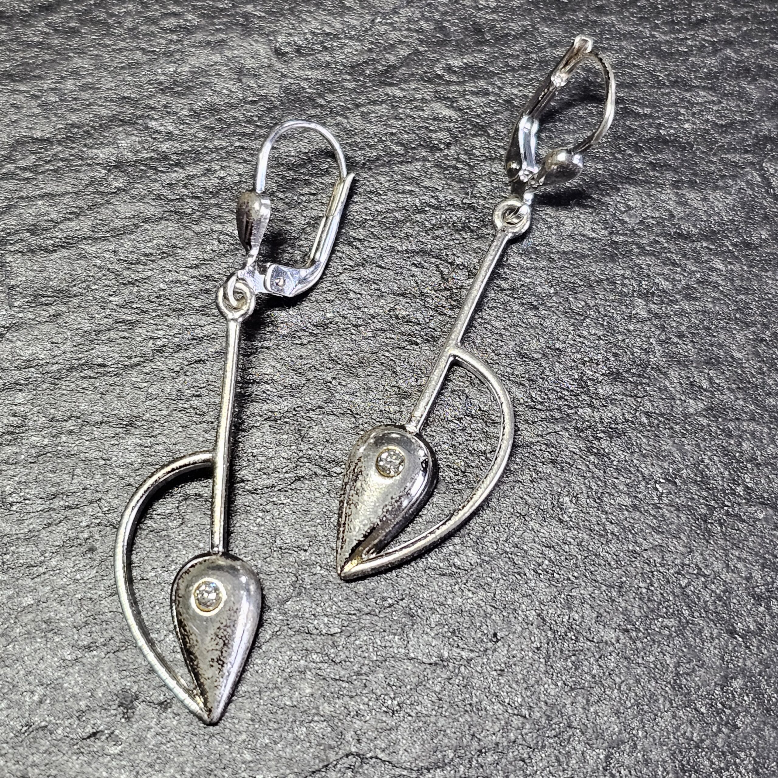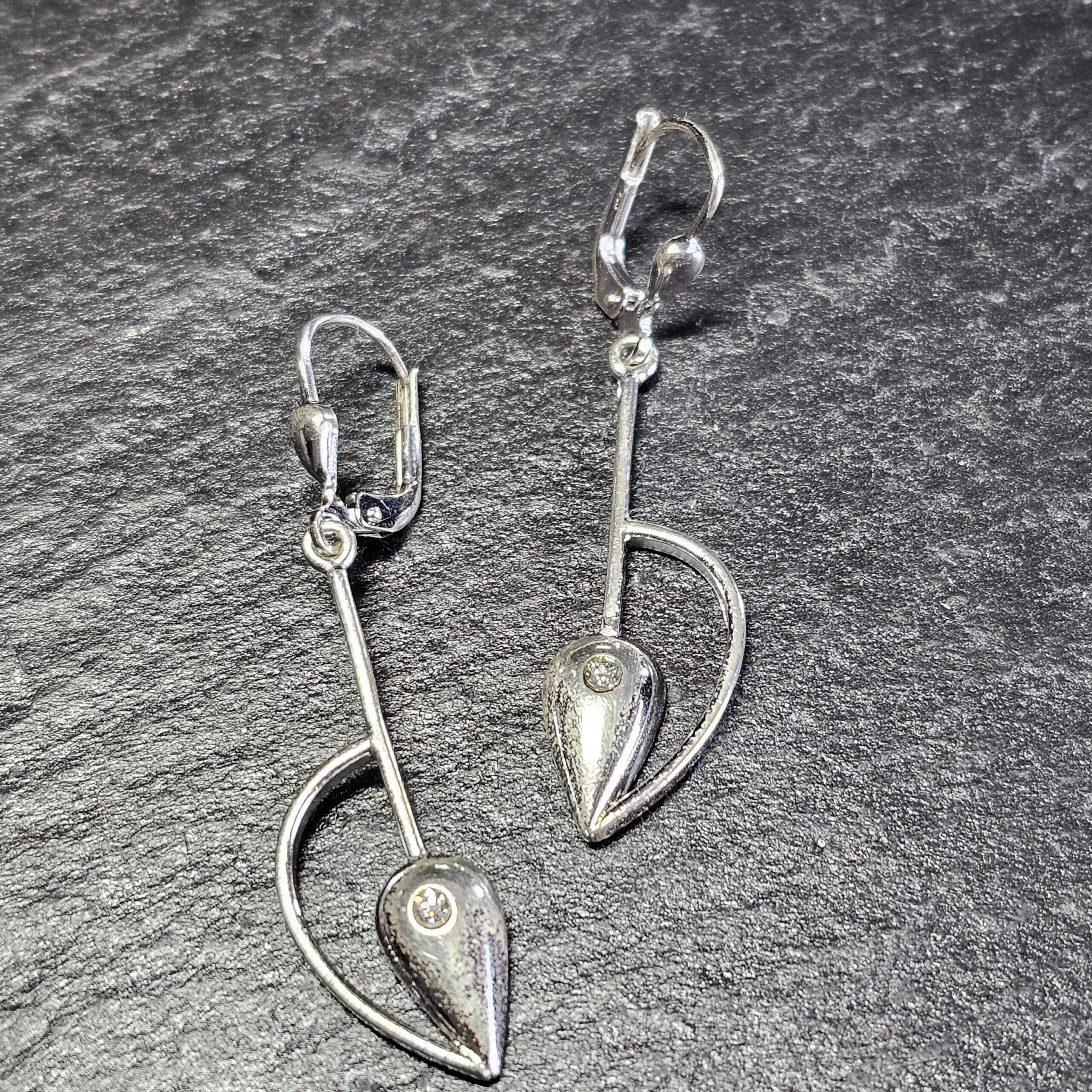 Sehr schöne Ohrringe / Hängeohrringe. Sie sind aus Silber 925 gefertigt und je mit einem klaren Kristallsteinchen geschmückt.