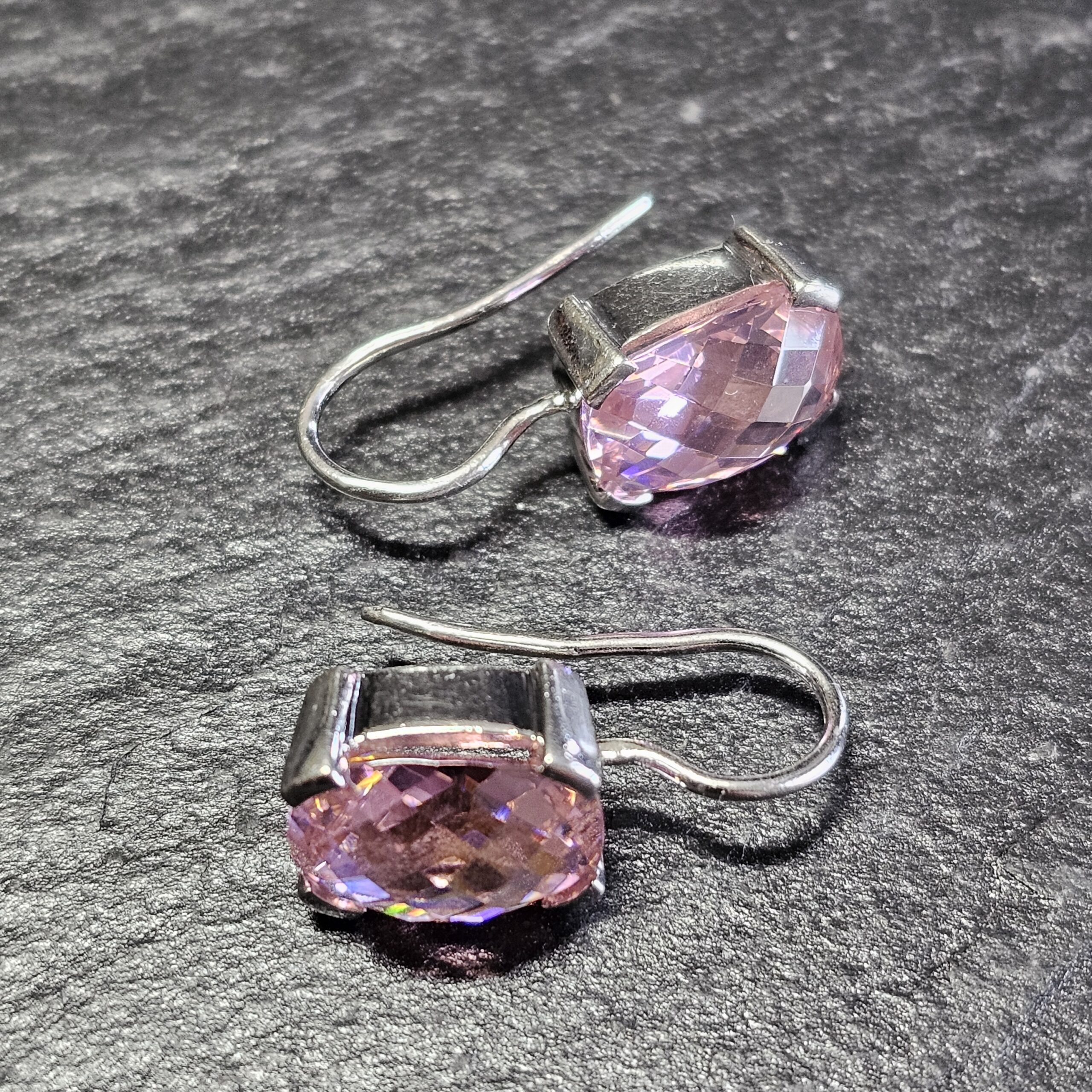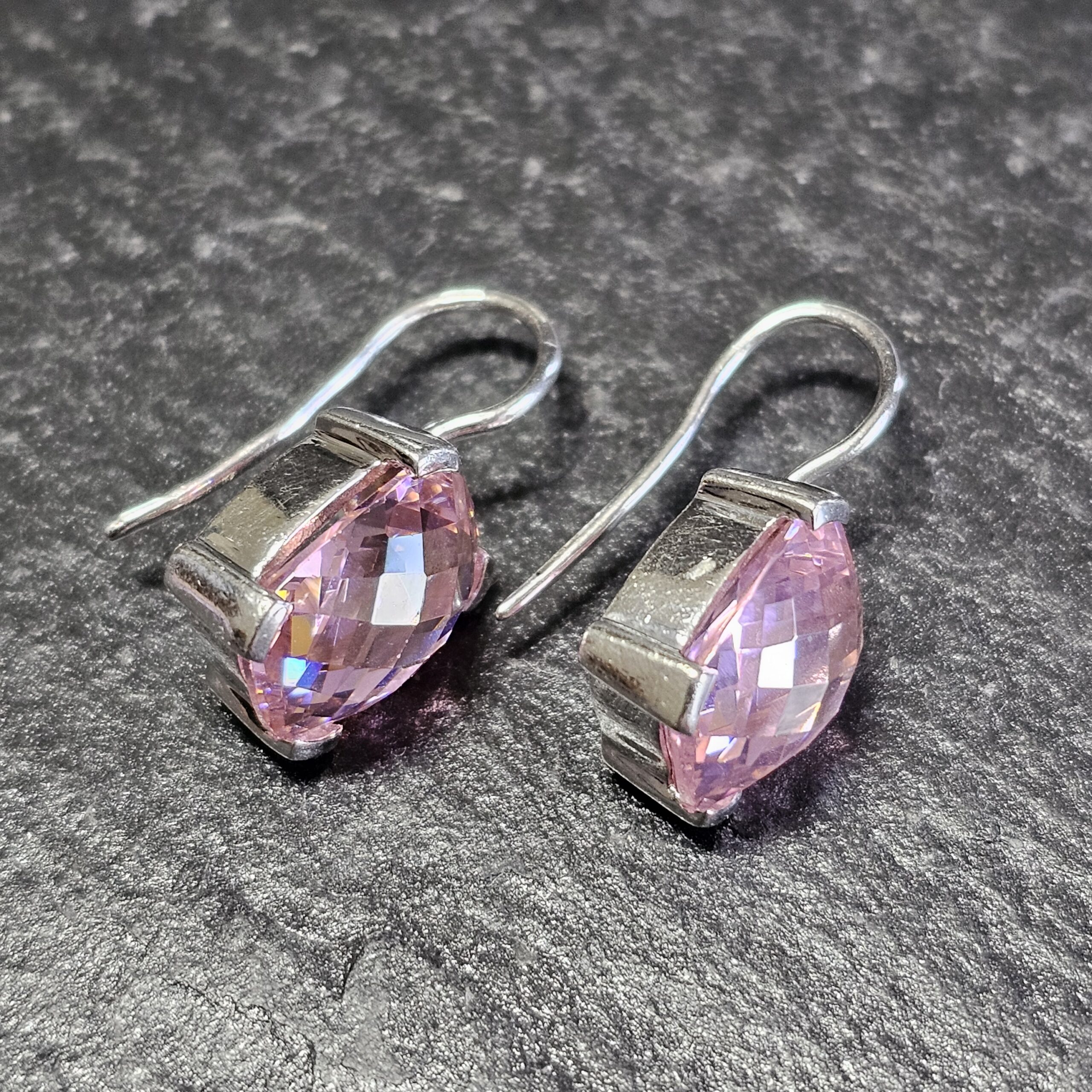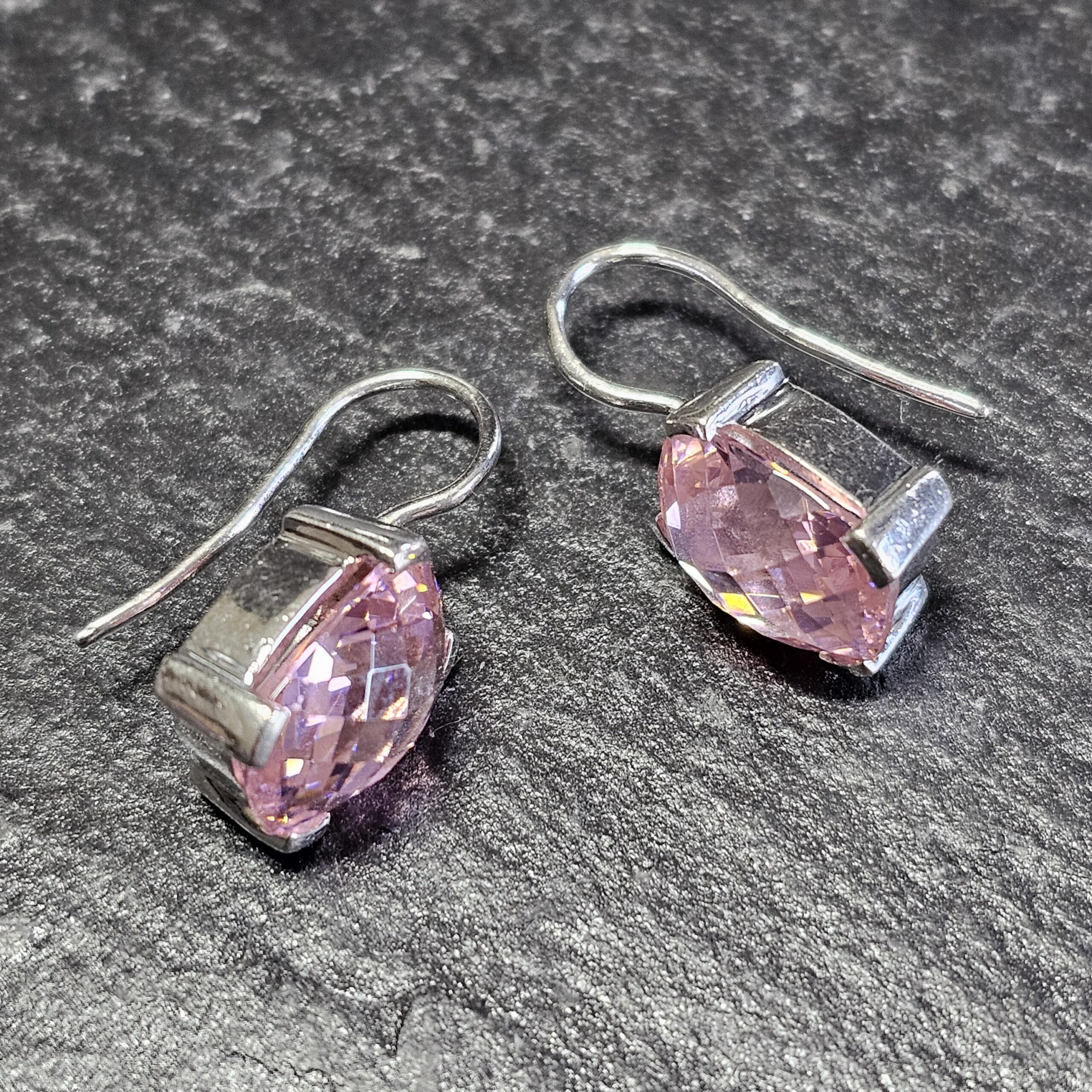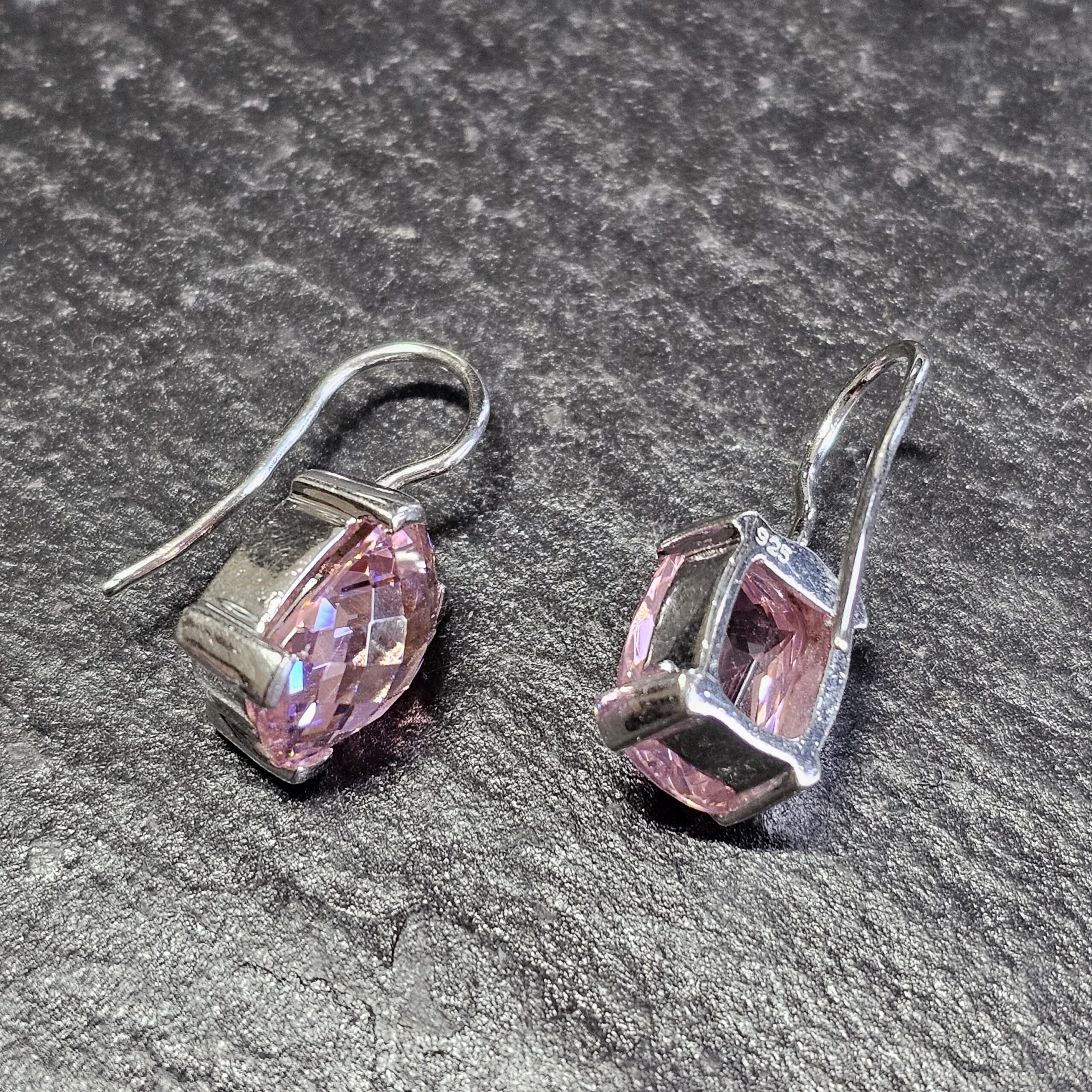 Glitzernde Ohrringe / Ohrhänger mit je einem tollen rechteckigen rosa Kristallstein mit Facettenschliff.