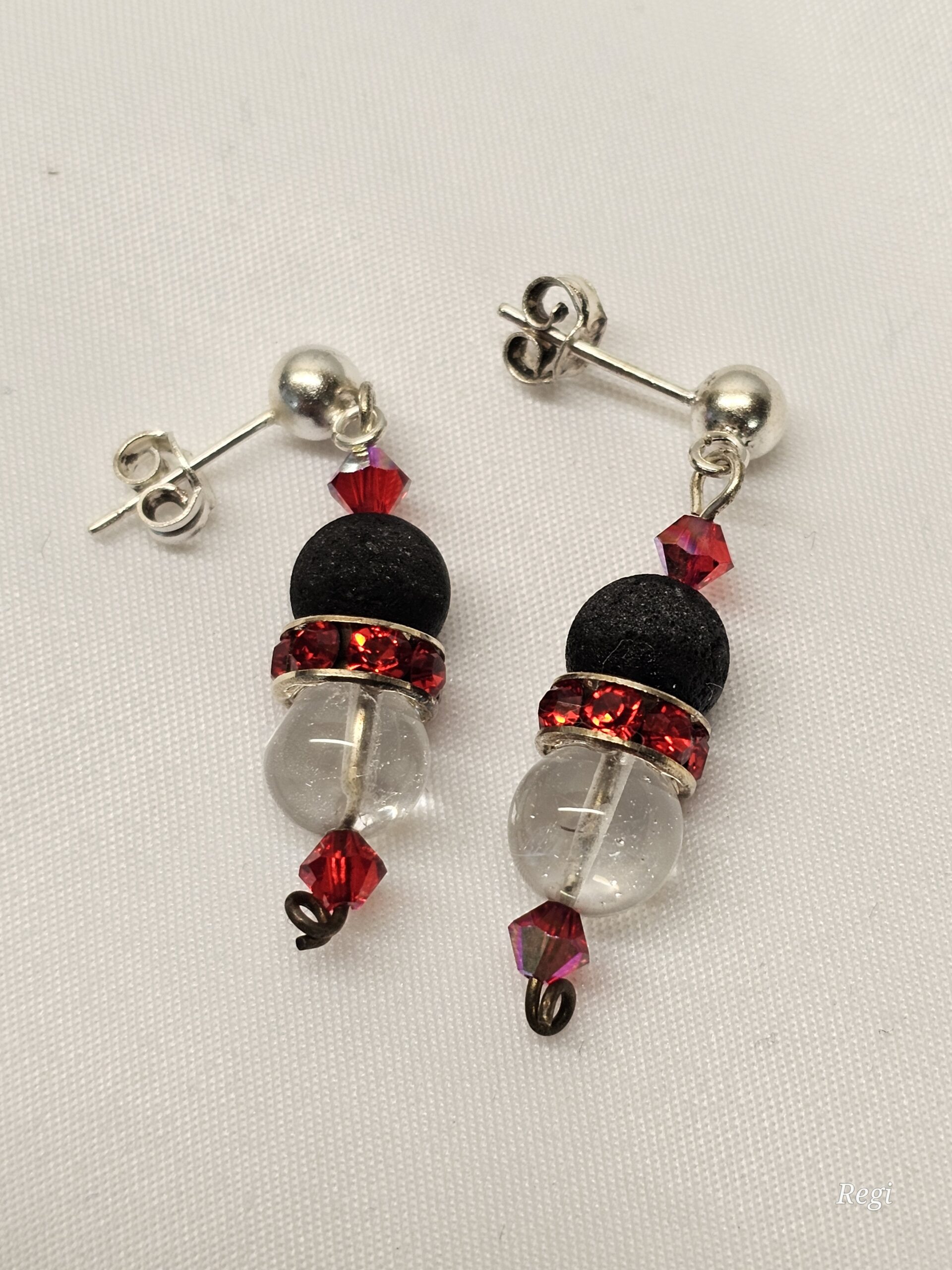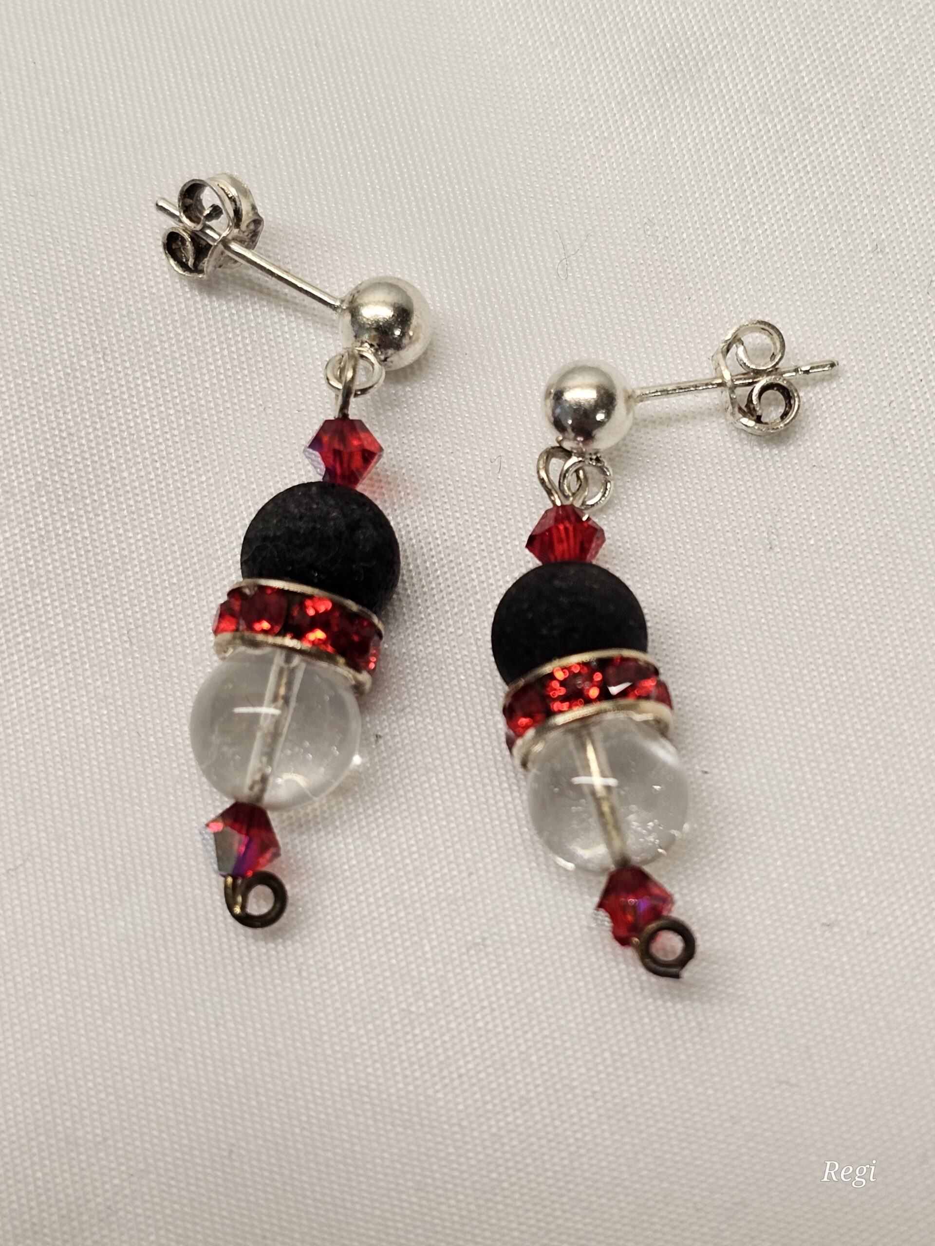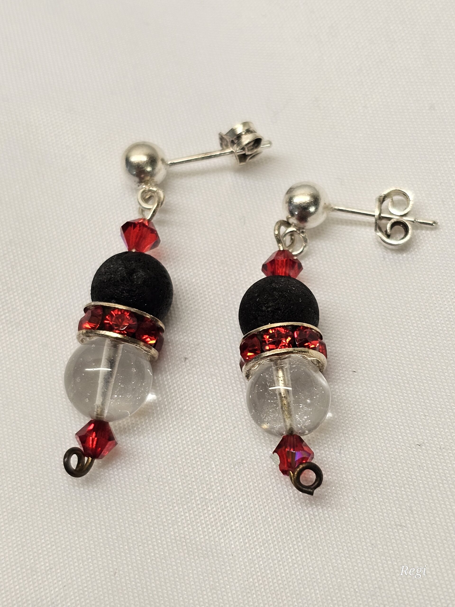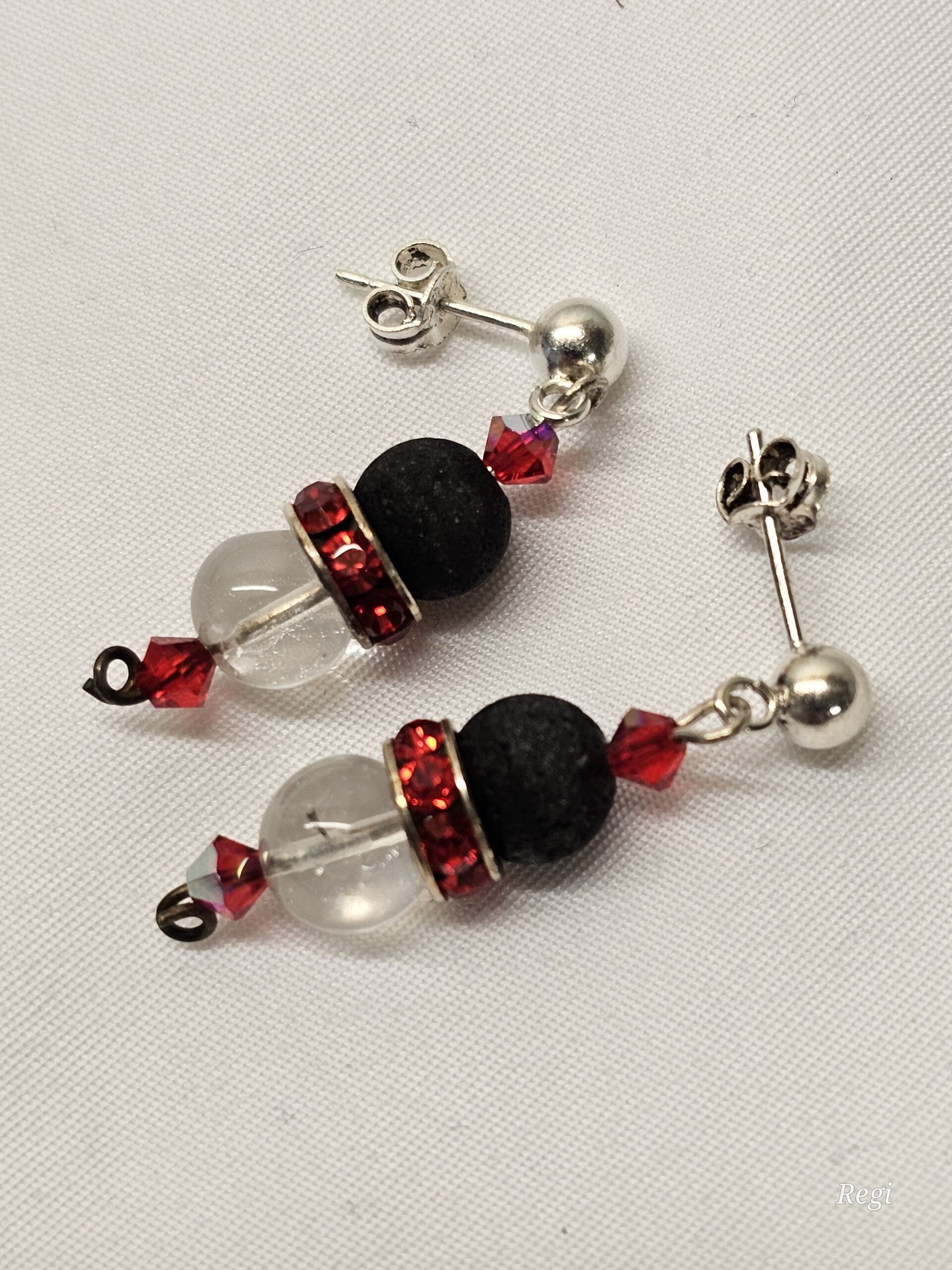 Tolle Ohrringe / Ohrstecker lang aus Silber 925. Bestückt sind die tollen Ohrringe je mit einem Lawastein, einem klaren Farbstein und kleinen roten Kristallsteinchen.