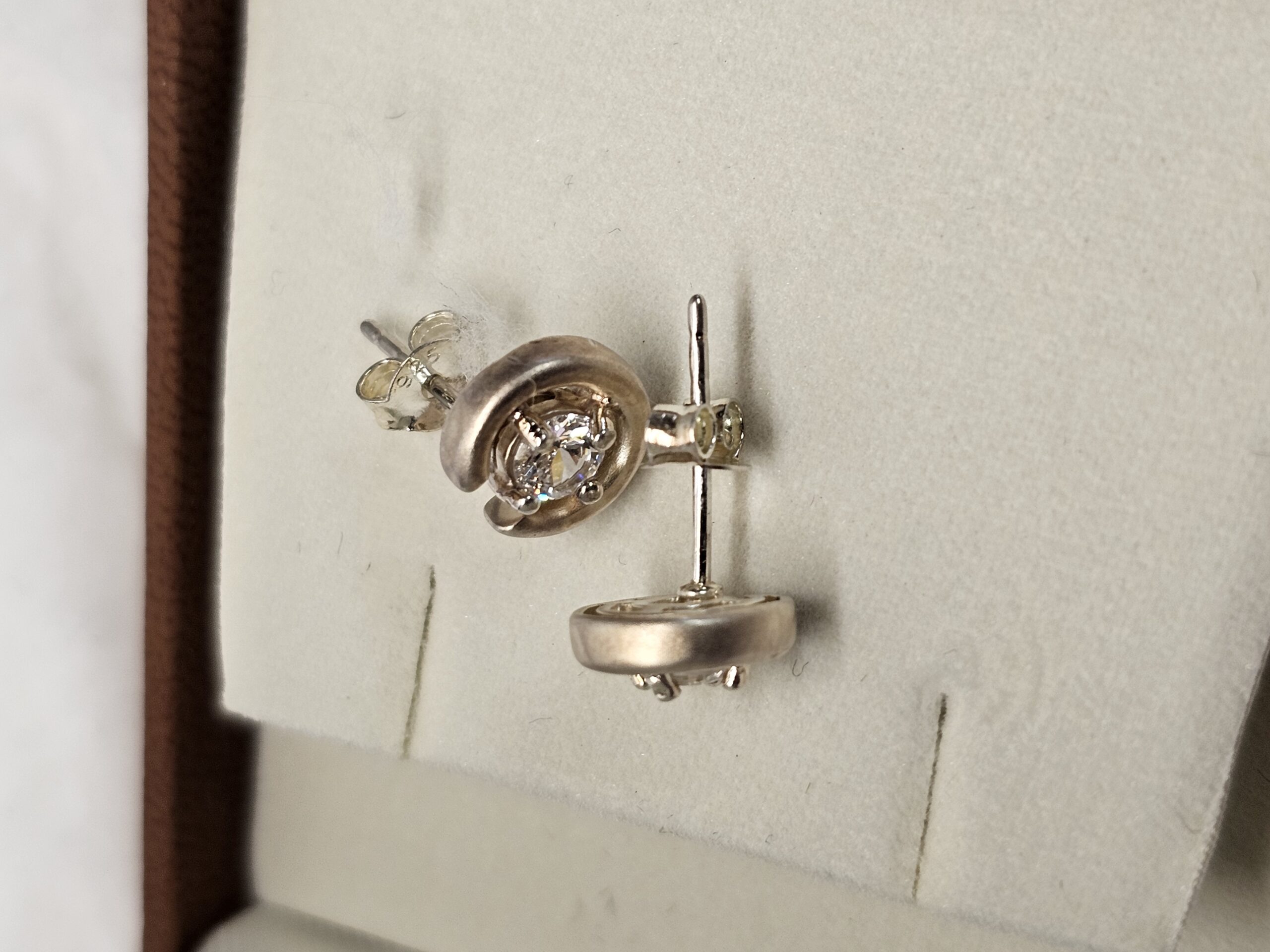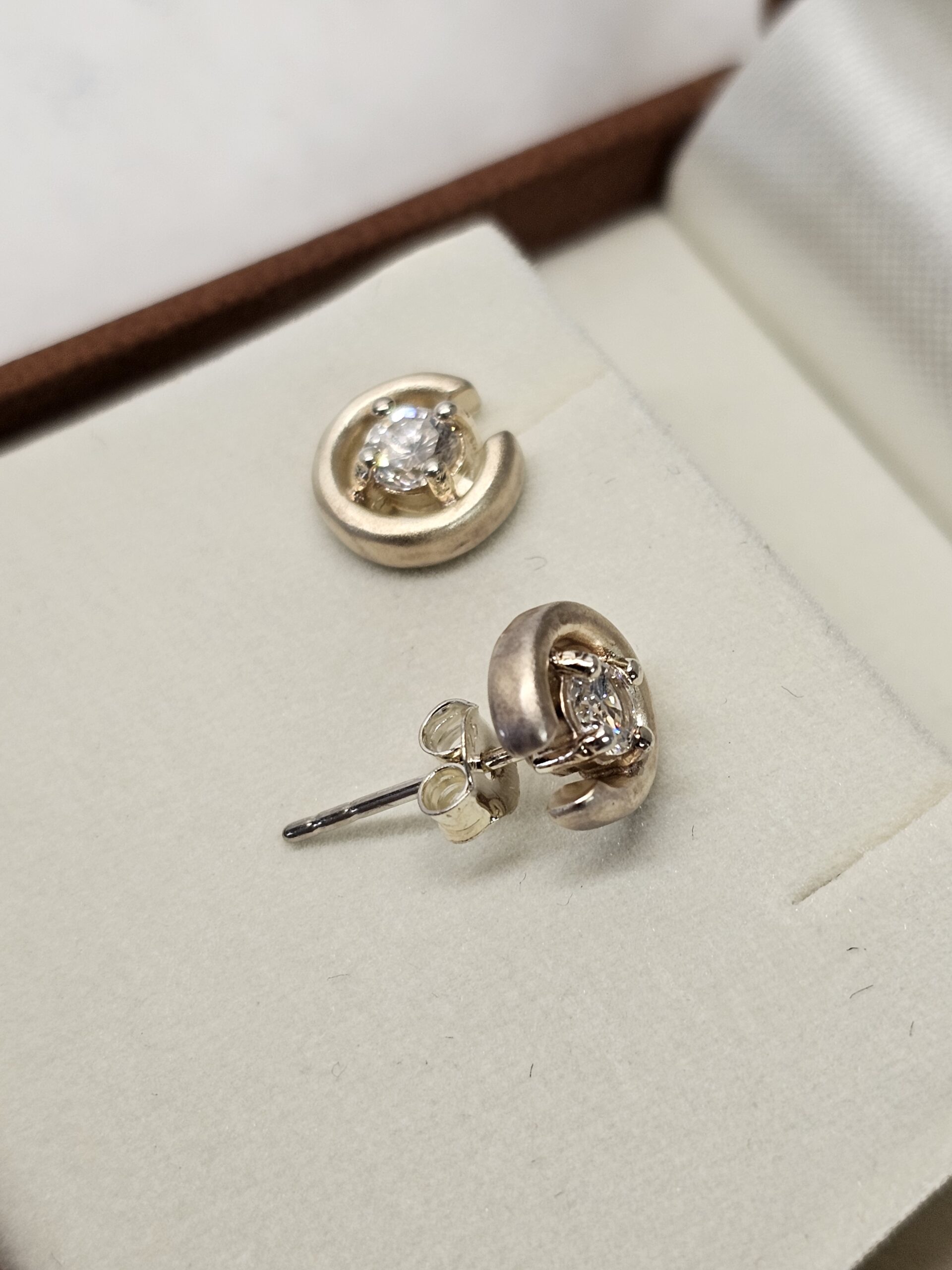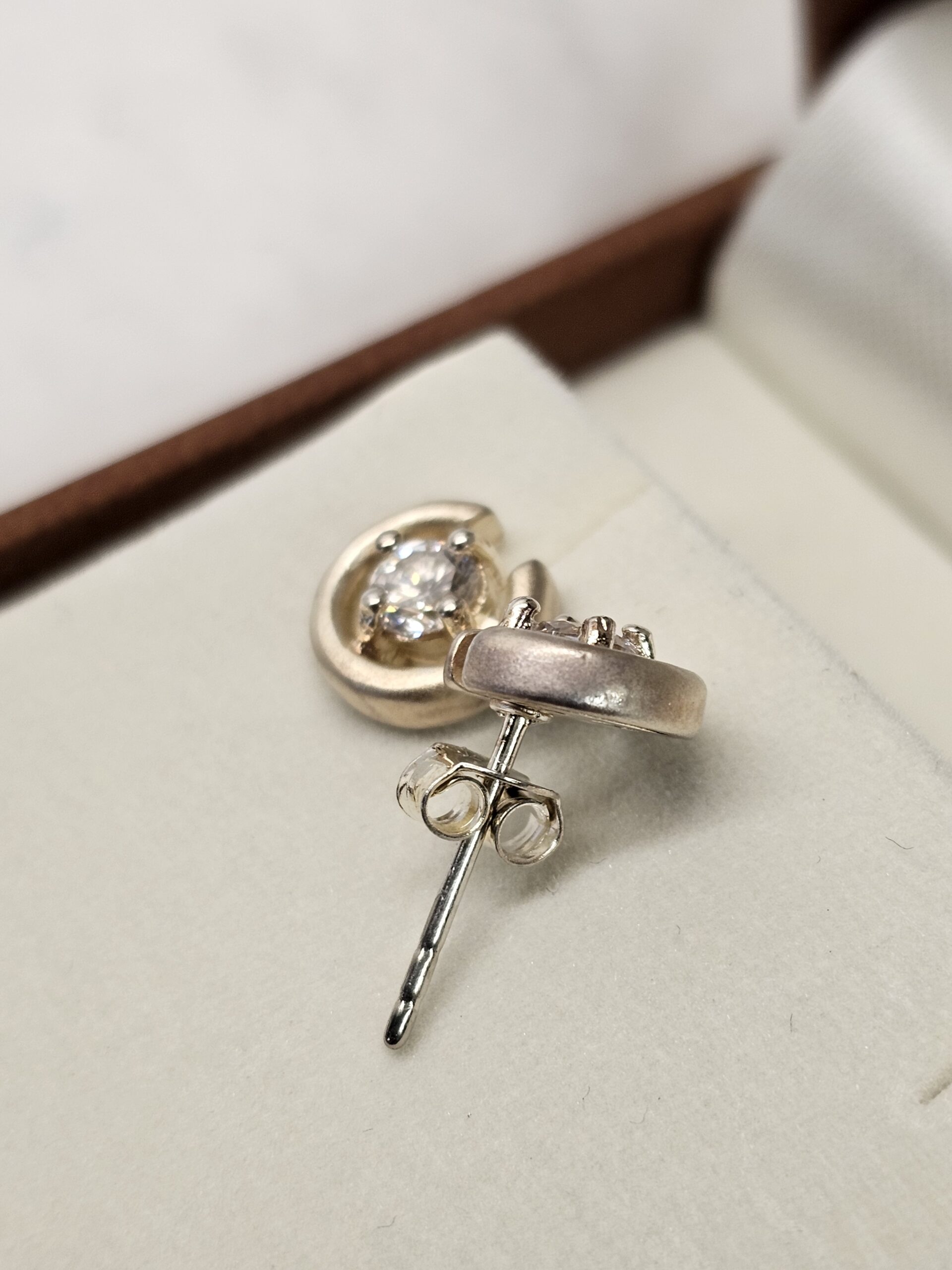 Schöne Ohrringe / Ohrstecker aus 925 Silber mit Teilvergoldung im Frontbereich und je einem Kristallsteinchen besetzt.