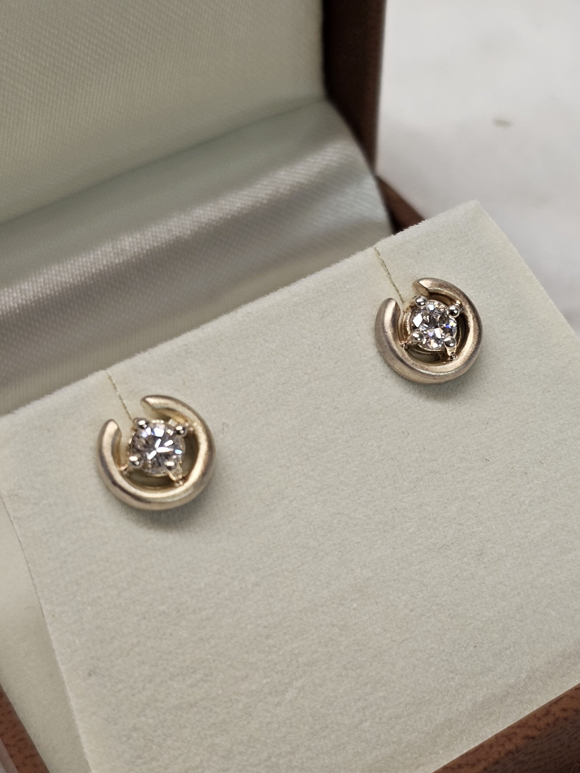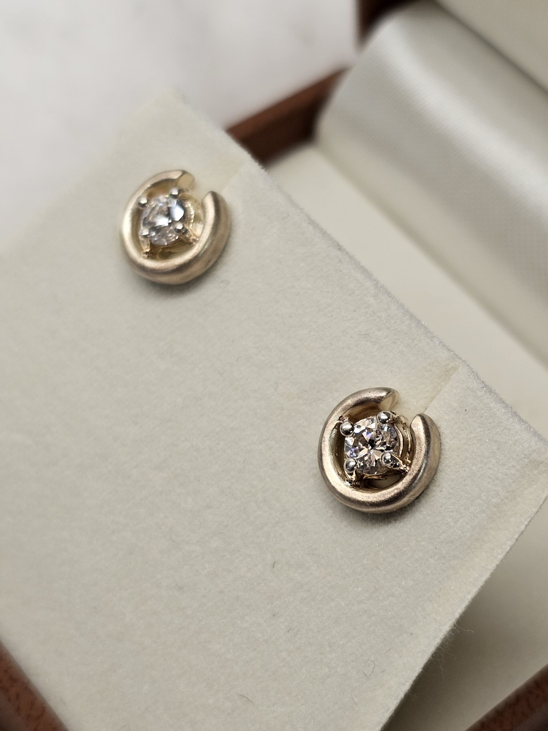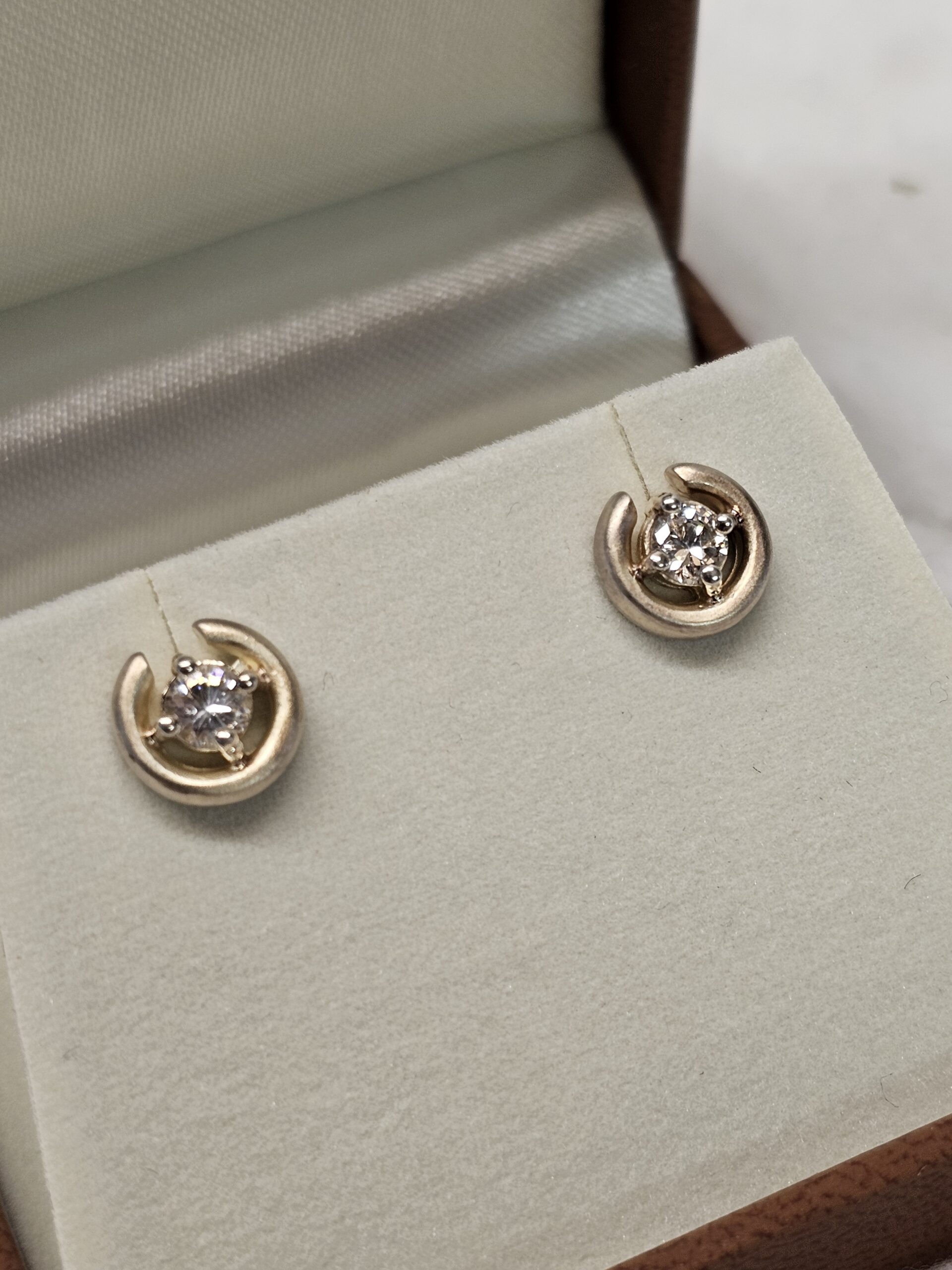 Schöne Ohrringe / Ohrstecker aus 925 Silber mit Teilvergoldung im Frontbereich und je einem Kristallsteinchen besetzt.