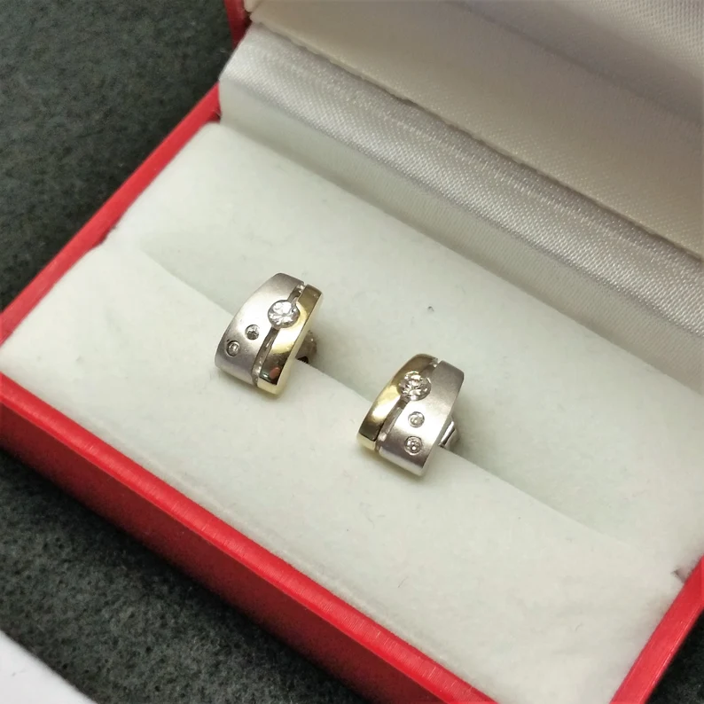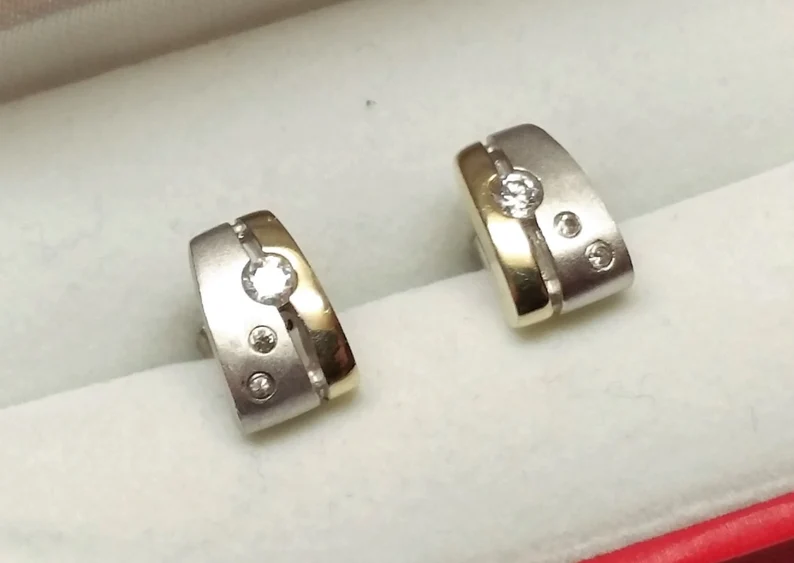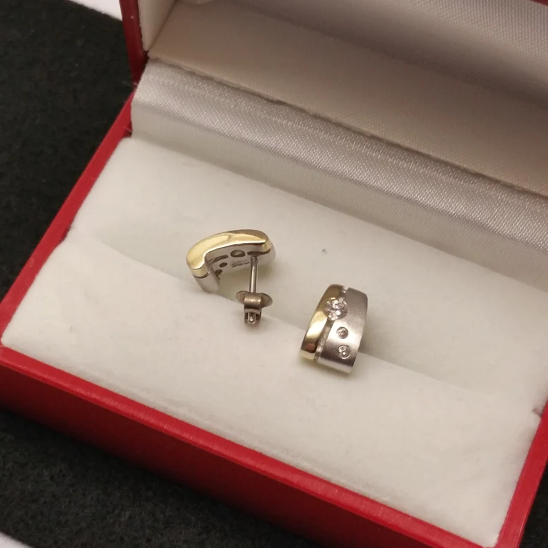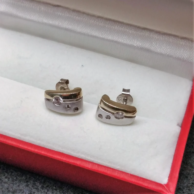 Ohrringe / Ohrstecker aus 925 Silber mit Teilvergoldung und je 3 Kristallsteinchen unterschiedlich groß.