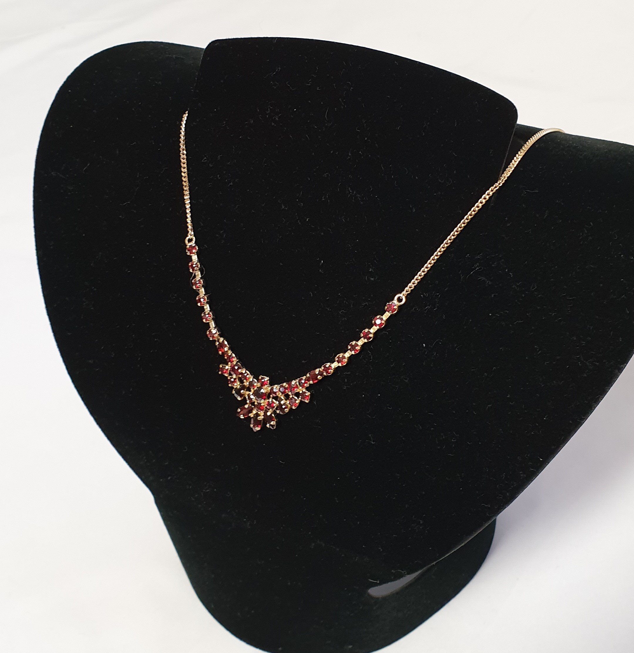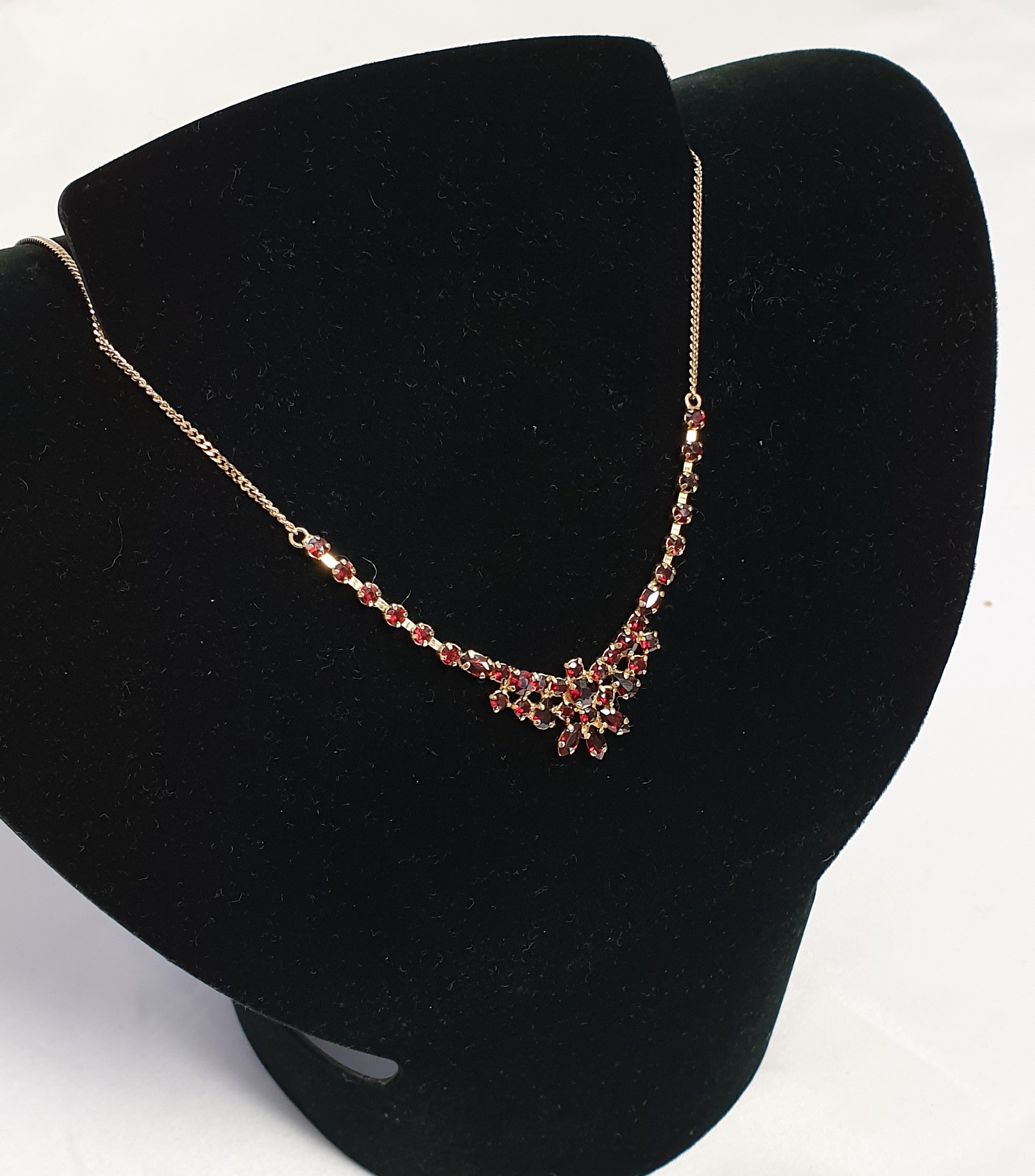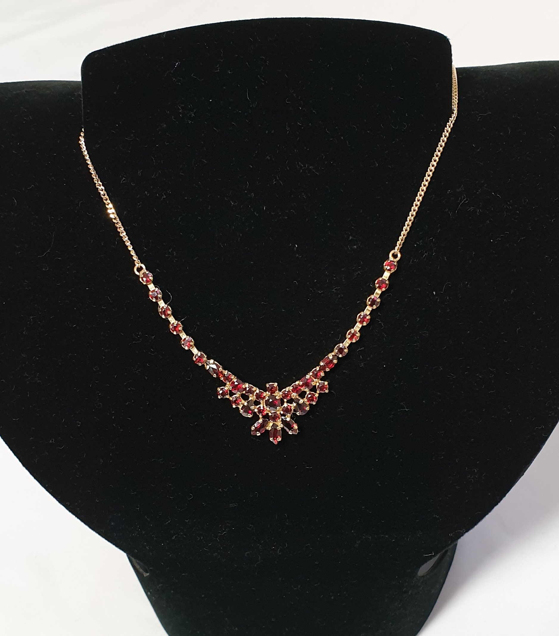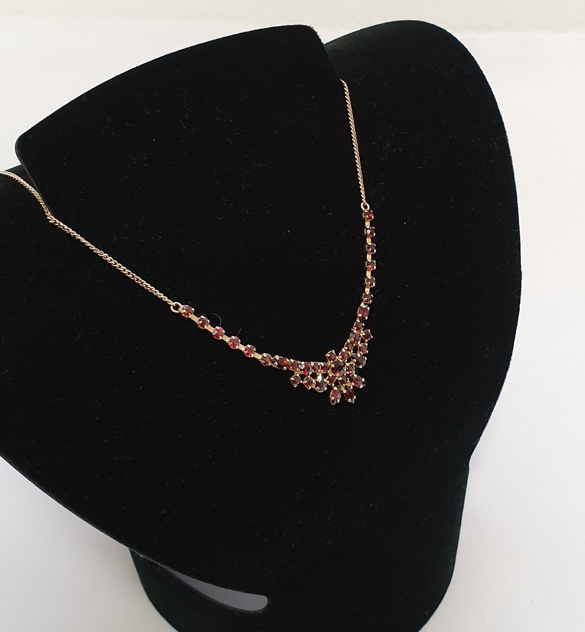 Sehr schönes, nostalgisches Shabby Vintage Stück. Halskette / Collier Gold 333 im Mittelstück mit böhmischen Granatsteinen besetzt.