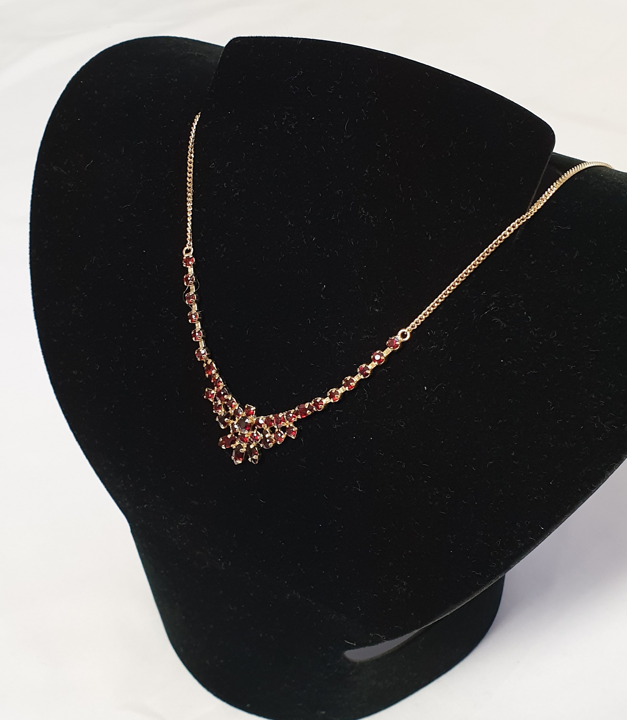 Shabby Vintage Collier Halskette Kette Gold 333 böhmischer Granat elegant GK154