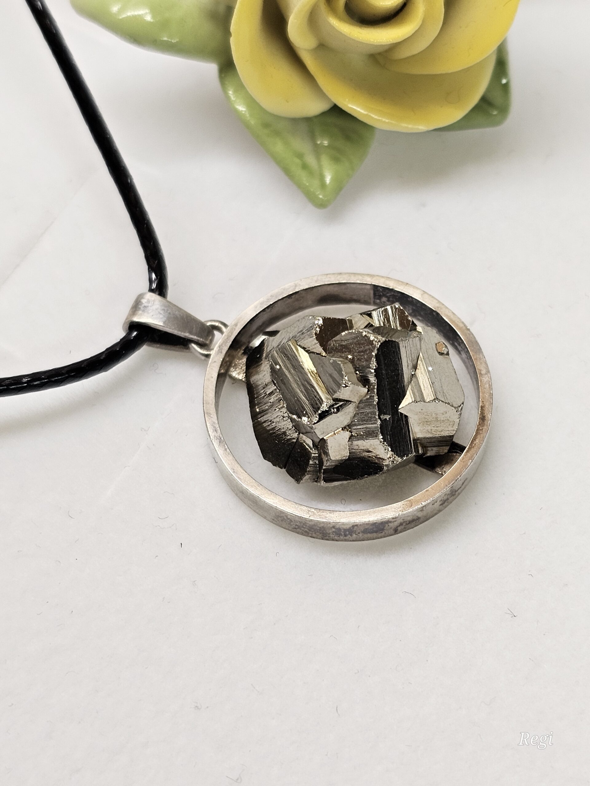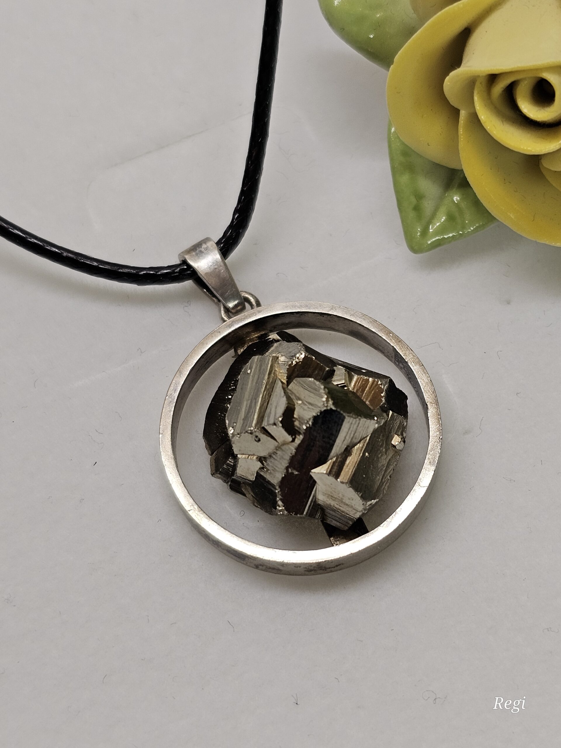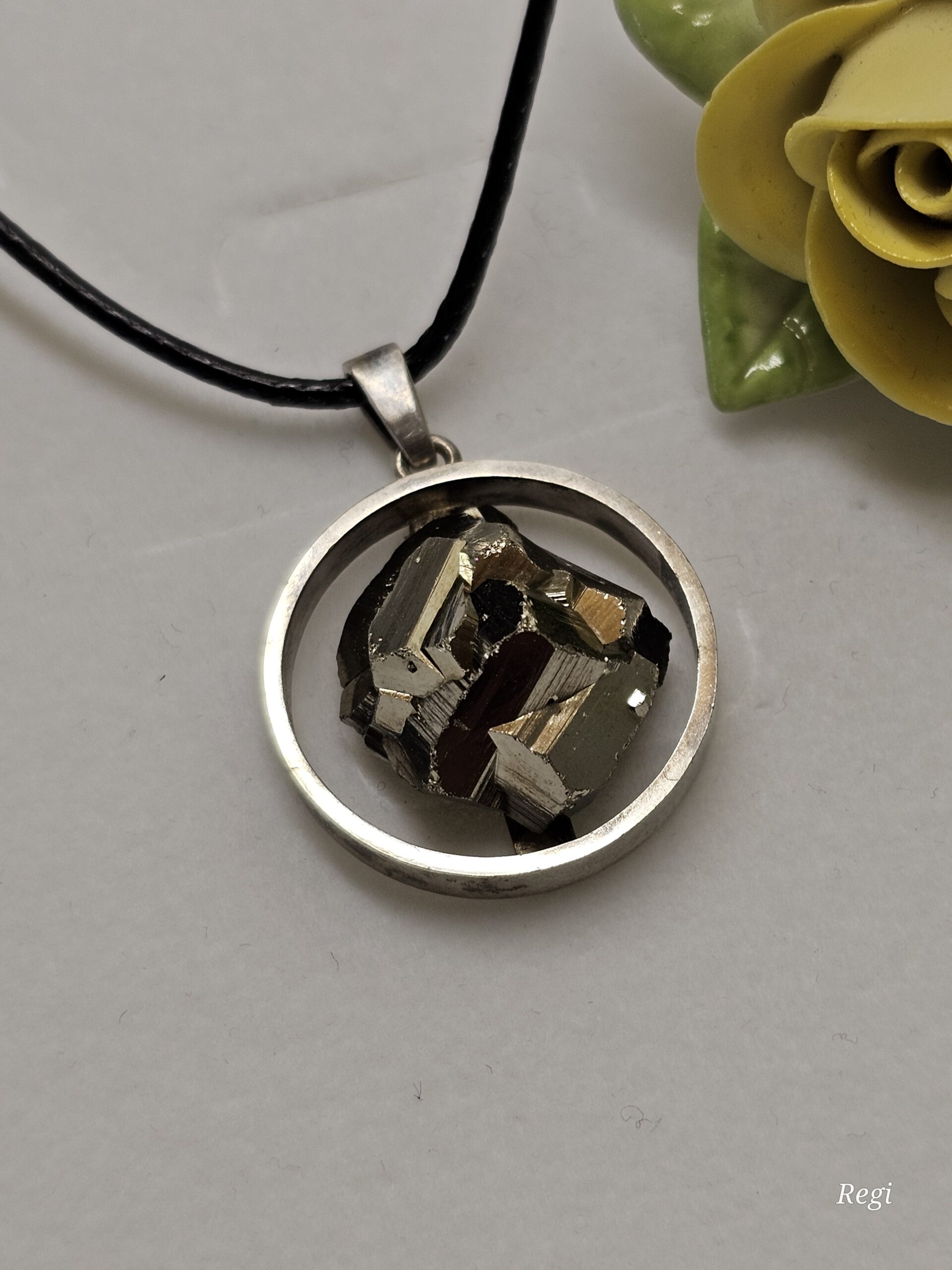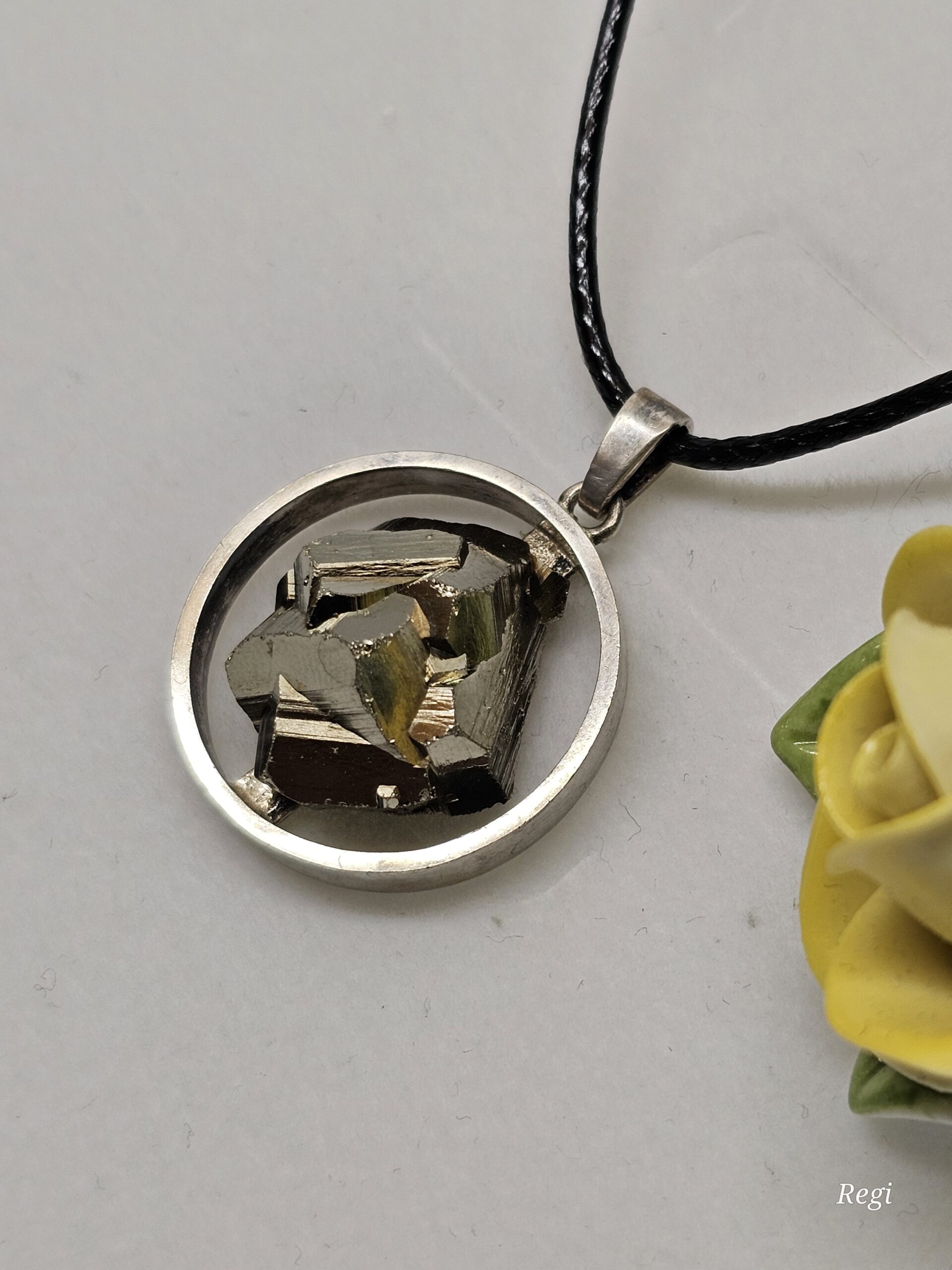 Toller Anhänger Silber 835 mit Pyrit-Stein in einem stylischen Design gearbeitet.