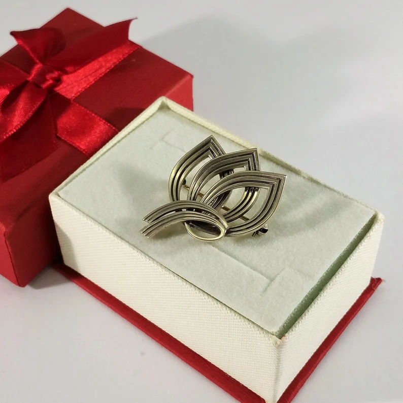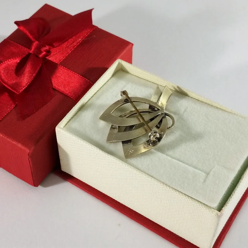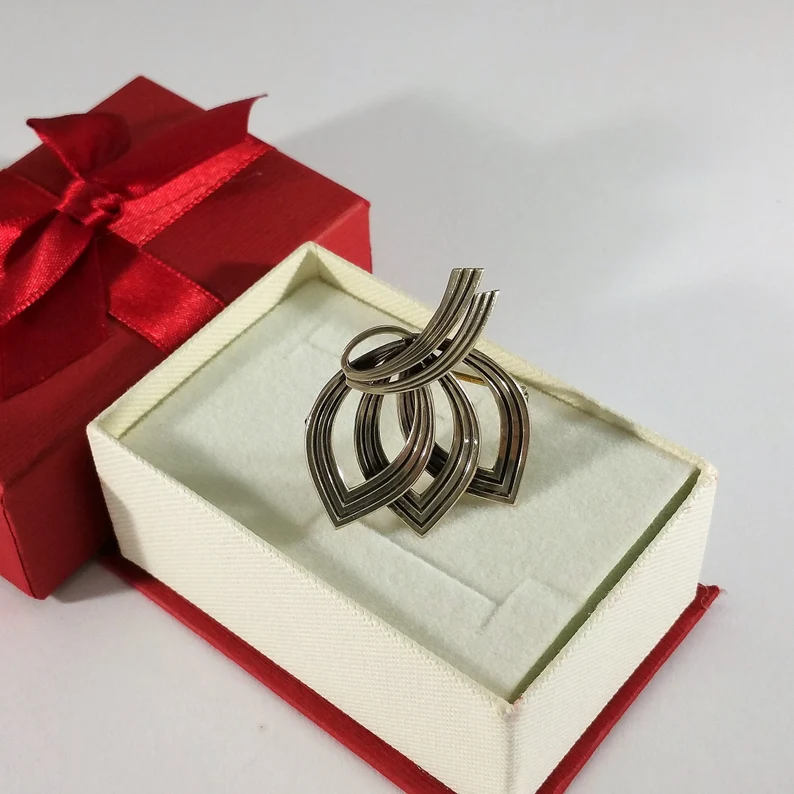 Hübsche Vintage Design Silberbrosche, nostalgisch schön.