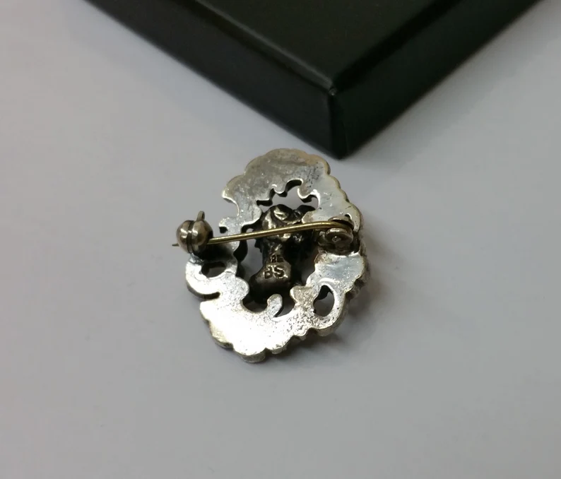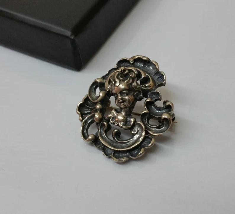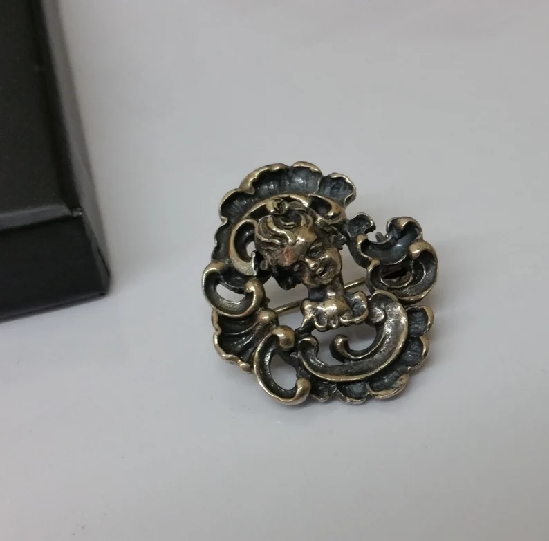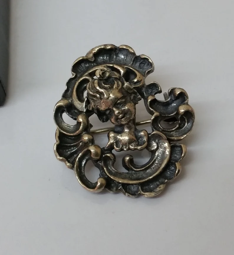 Schöne, seltene Silber 925 Brosche mit Engelputte. Massive Verarbeitung. Meisterpunze BS.